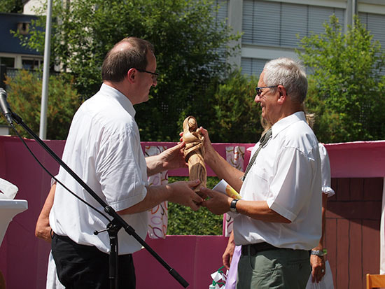Pfarrer Hans Wimmer bedankte sich beim Mandatsträger Siegmund Gaubinger für sein unermüdliches Engagement für den Kindergarten.