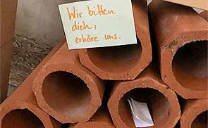 Die Katholische Jugend hat in der Kirche eine Fürbittmauer aufgebaut. Hier finden Sie Platz für Ihre Bitten oder Gebete, die Sie auf einem Zettel formulieren und in einen Mauerstein legen können. Beim nächsten Gottesdienst werden diese im Fürbittgebet vor Gott gebracht.