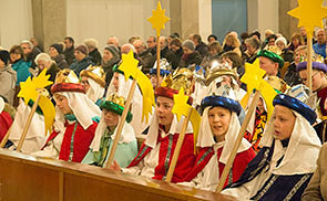 Im Zuge der Erstkommunionvorbereitung erklärte unser Pfarrer den Kindern die Pfarrkirche. Bei dieser Gelegenheit zeigten ihnen die erfahrenen Ministranten Heike Grabmair und Andreas Eibl die Sakristei und erzählten vom Dienst am Altar. Einige Kinder durften sogar ins Ministrantengewand schlüpfen oder einmal mit den Glocken läuten.