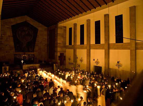 Bilder von der Karfreitagsliturgie und der Feier der Osternacht.