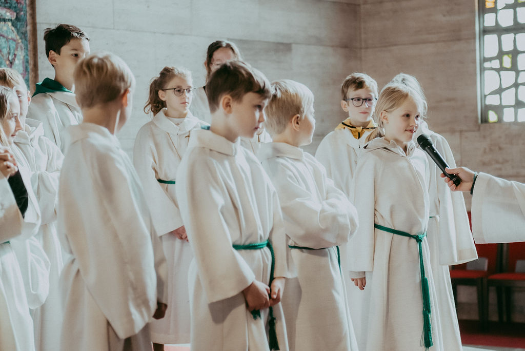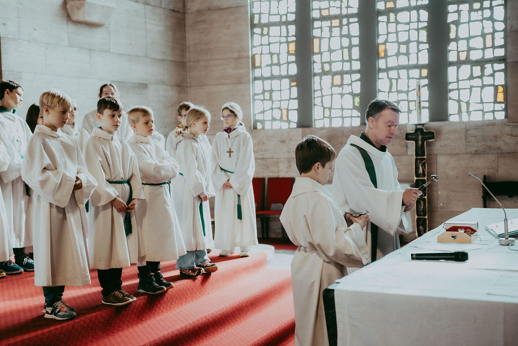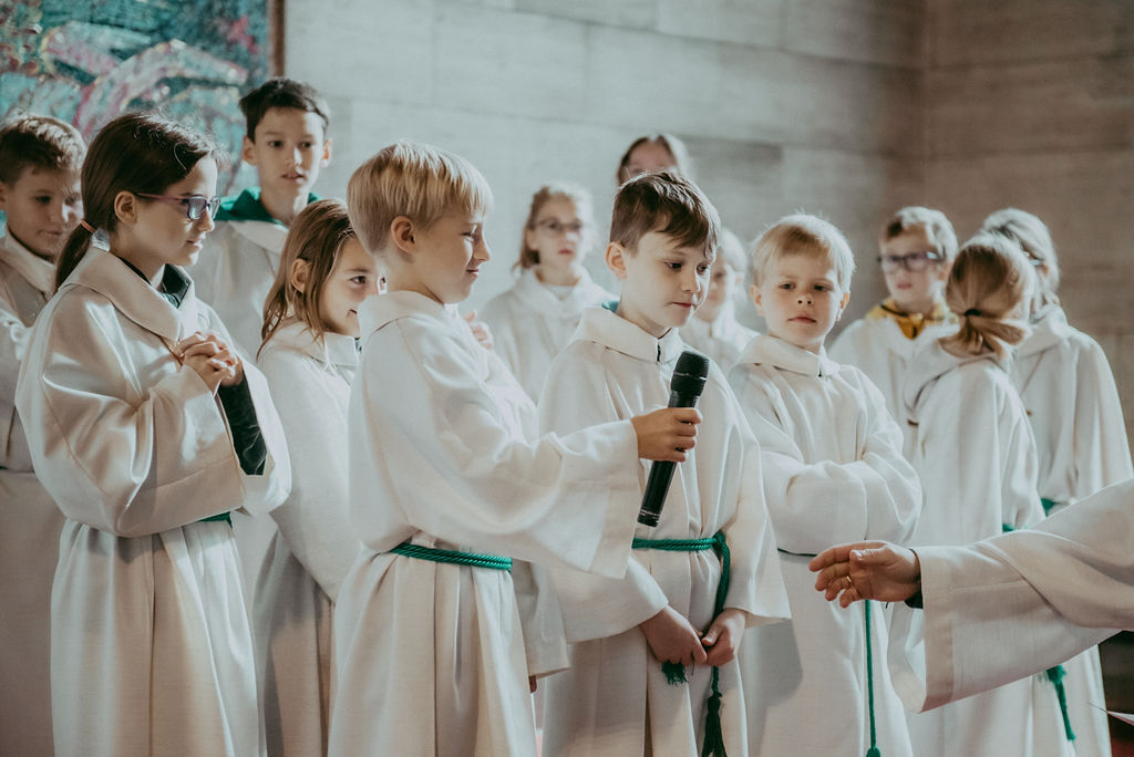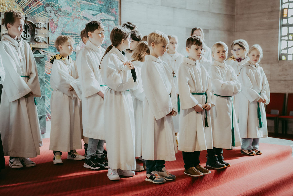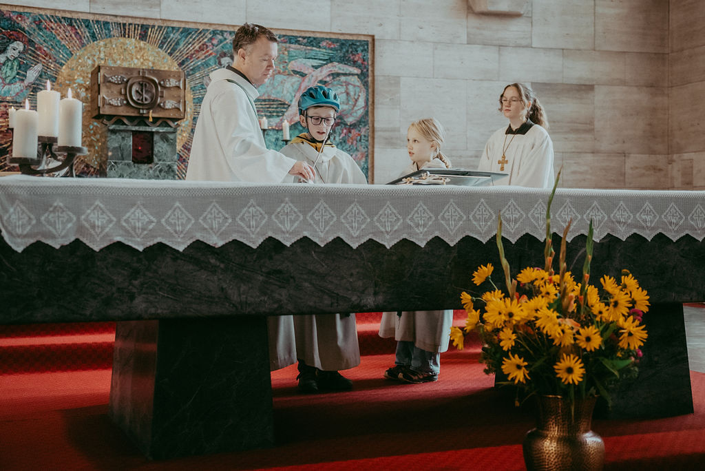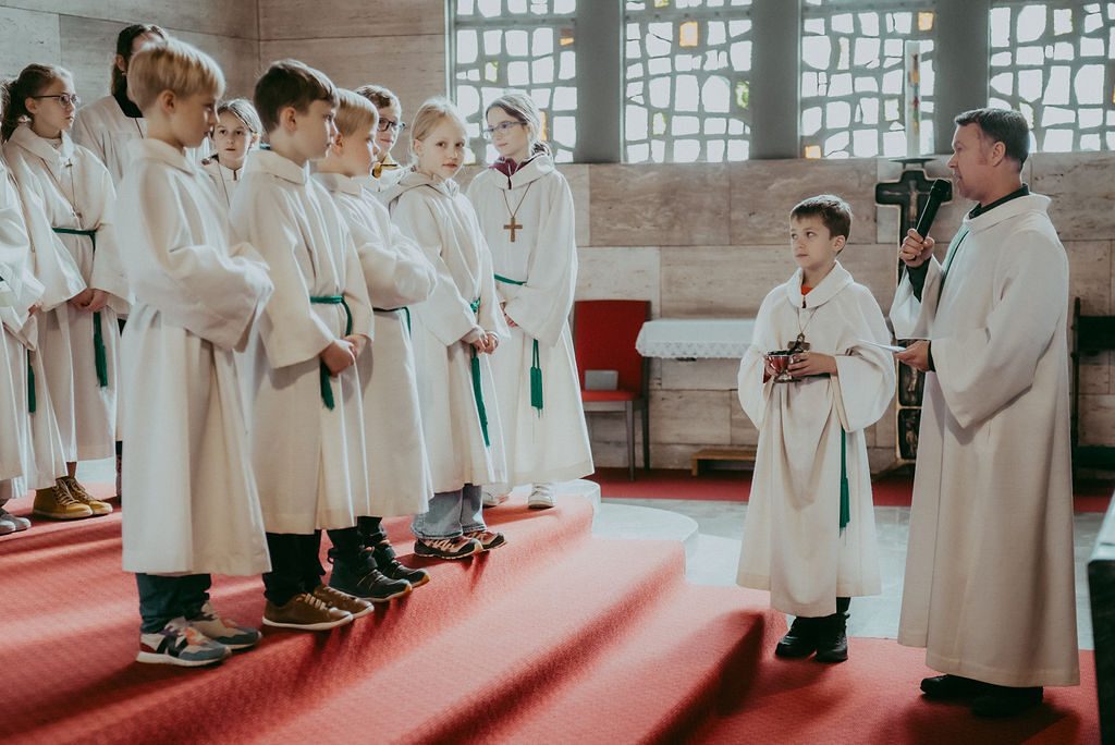 René Prinz-Toifl betonte, dass es Mut erfordert, einen Dienst im Altarraum zu übernehmen. Im Anschluss überreichte Christina Sporn den neuen Ministrant:innen die gesegneten Kreuze.