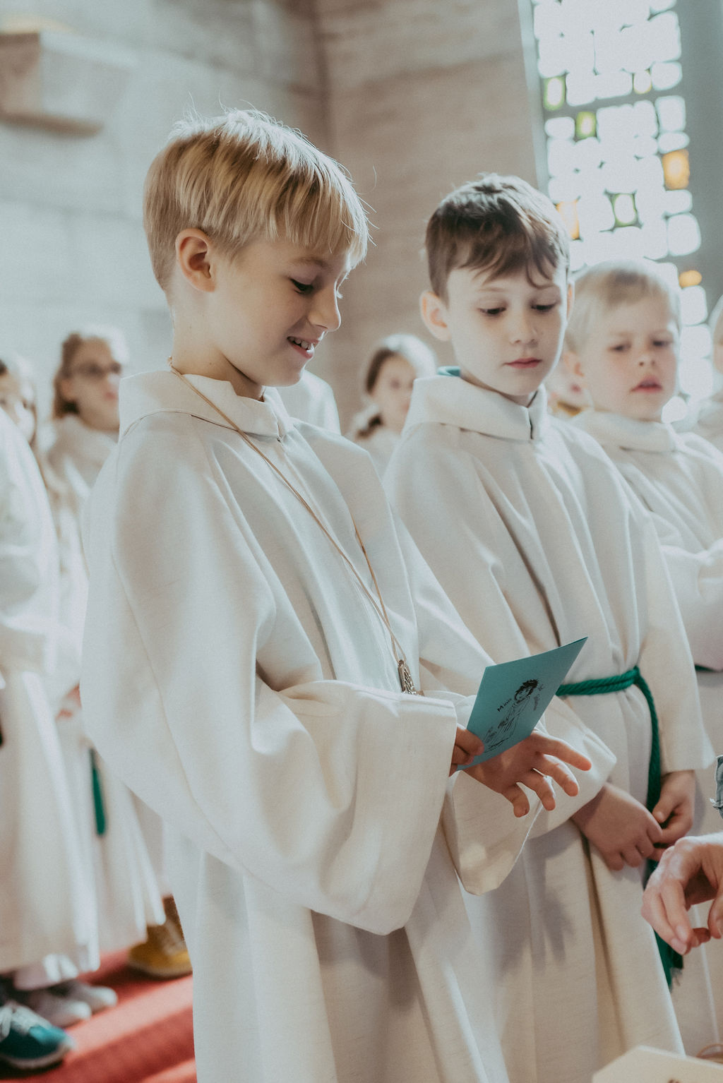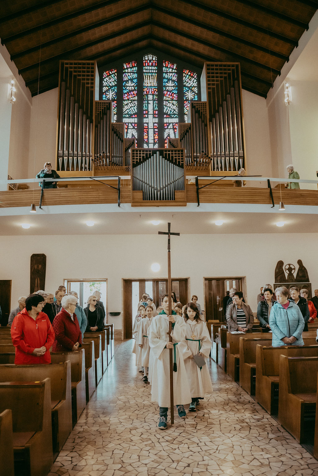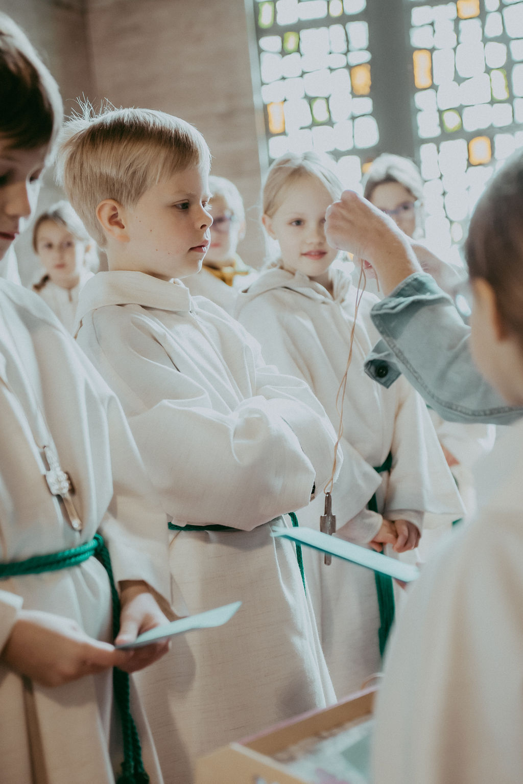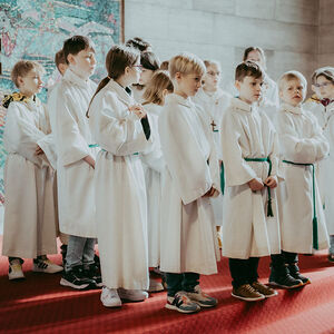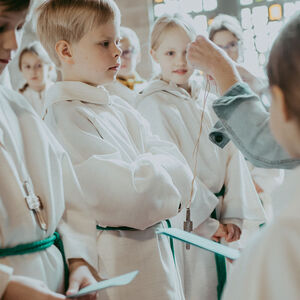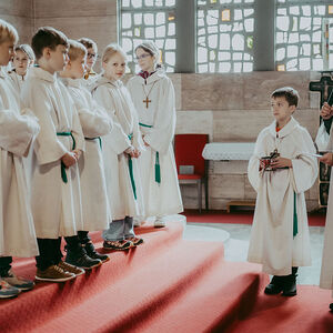 René Prinz-Toifl betonte, dass es Mut erfordert, einen Dienst im Altarraum zu übernehmen. Im Anschluss überreichte Christina Sporn den neuen Ministrant:innen die gesegneten Kreuze.