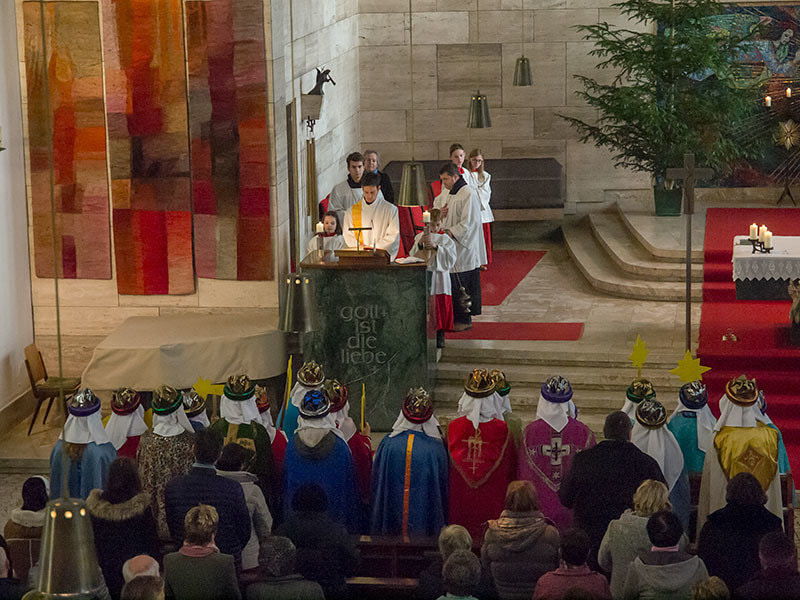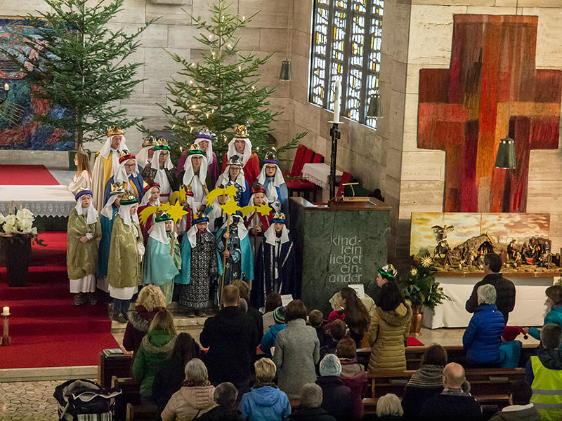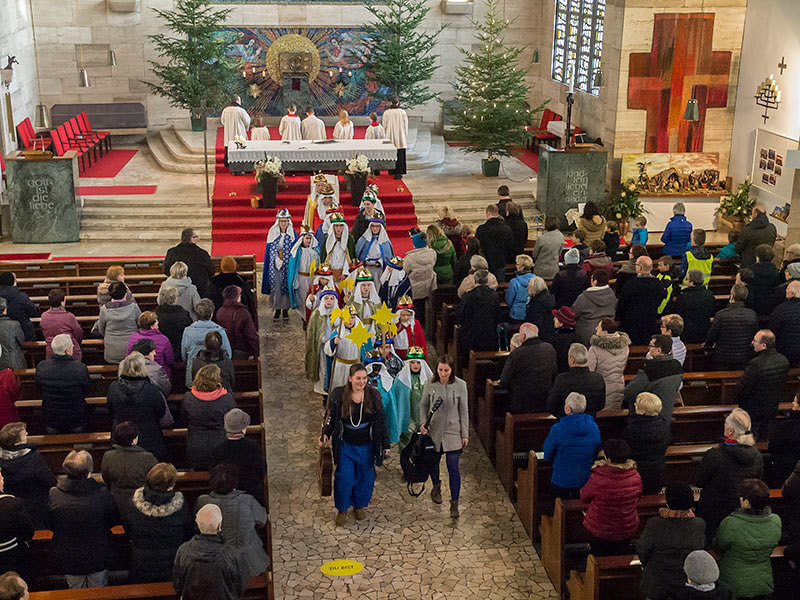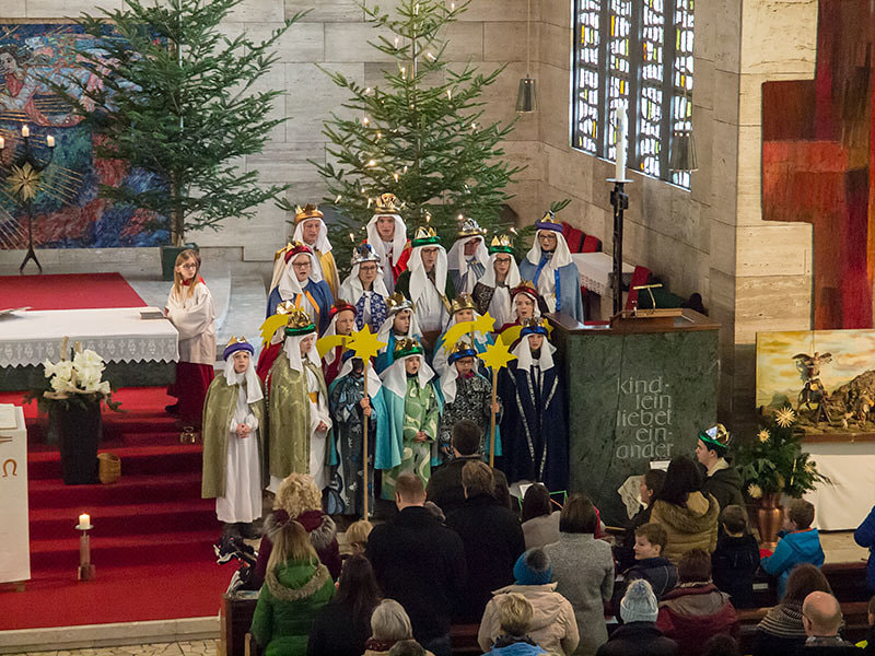 Am Dreikönigstag wurde bei der Wortgottesfeier, mitgestaltet von den Sternsingern, die Frohe Botschaft der Geburt Jesus Christi in Liedern und mit Sprüchen verkündet.
