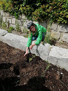 Die Ministranten Heike und Jakob radelten nach Wallern zur Jugendleiterin Daniela. Von ihr bekamen sie Zucchini und Gurken zum Einpflanzen. Leider schmecken Schnecken Gurken zuuu gut.