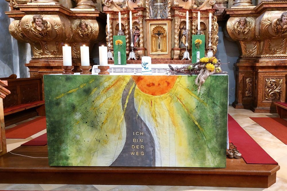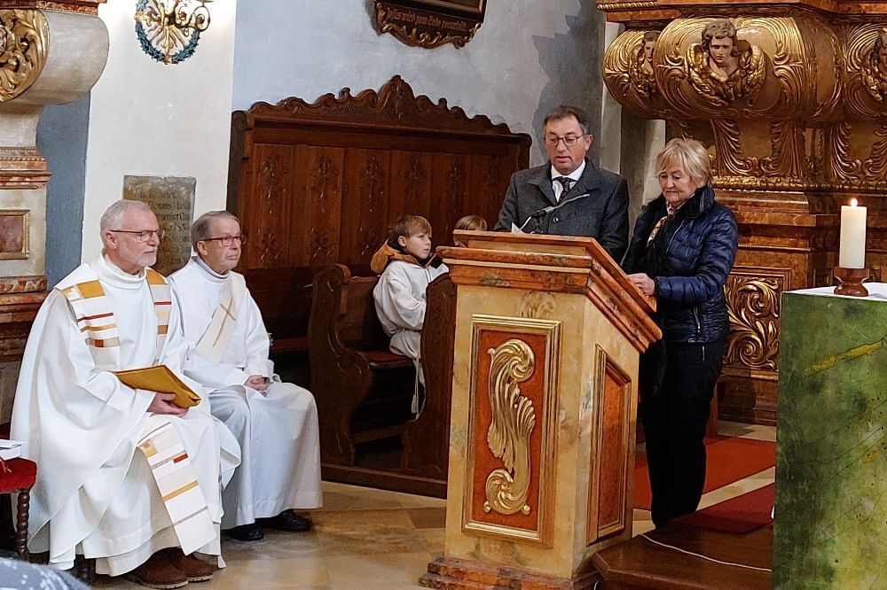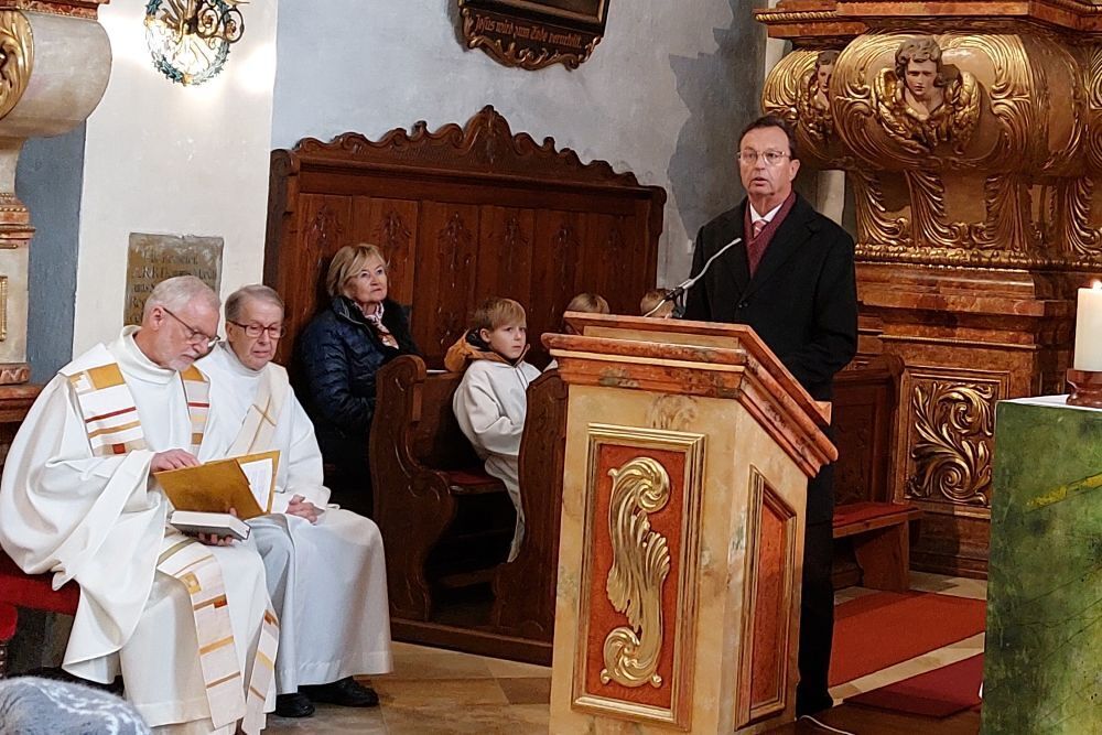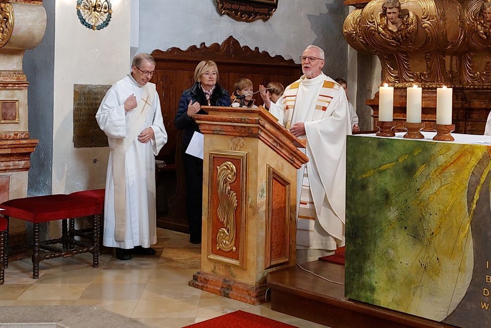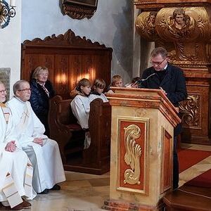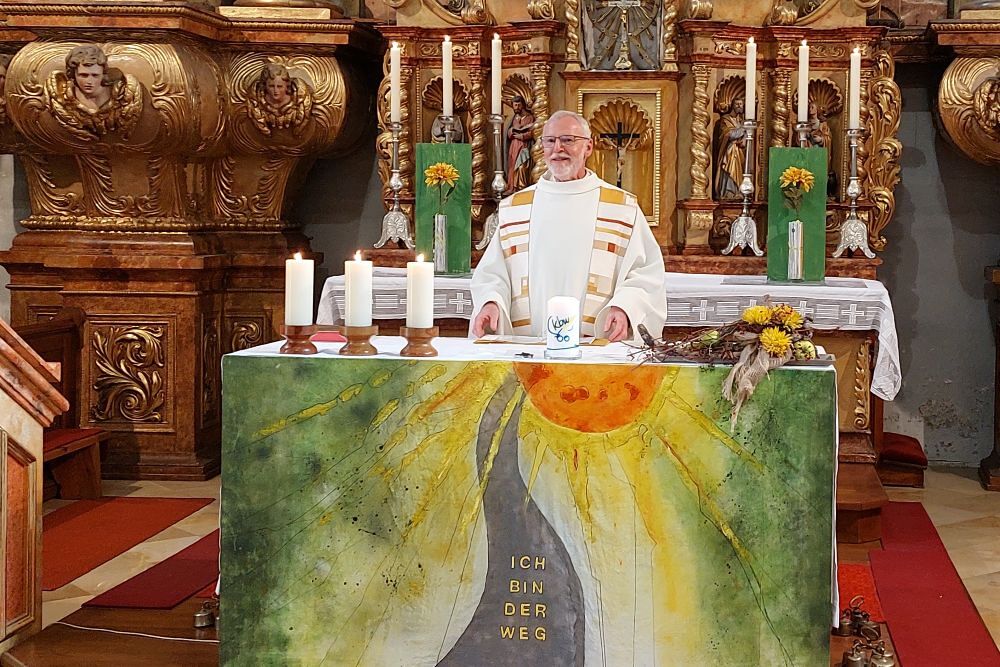 Der Einladung zum Gottesdienst am 23. November 2025 mit Mag. Klaus Dopler waren zahlreiche Pfarrangehörige und Wegbegleiter des kbw-Teams gefolgt. In einem beeindruckenden Rückblick wurden einige Highlights aus 29 Jahren Bildungsarbeit in unserer Pfarre gezeigt. Als bleibende Erinnerung und als Abschiedsgeschenk an die Pfarre wurde ein wunderschönes, von Heidi Gärtner gestaltetes, Altartuch übergeben.