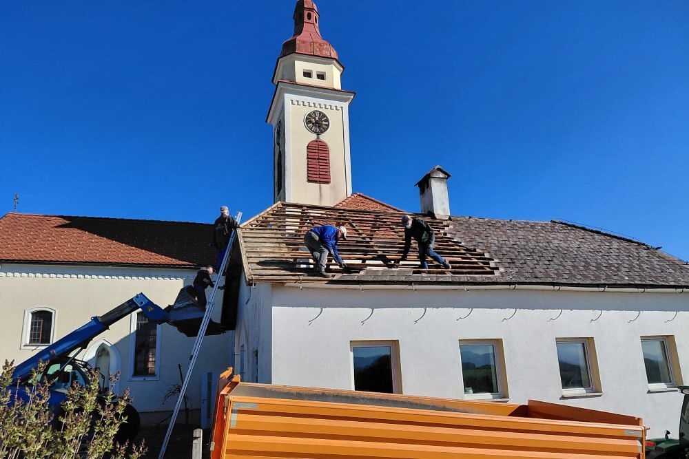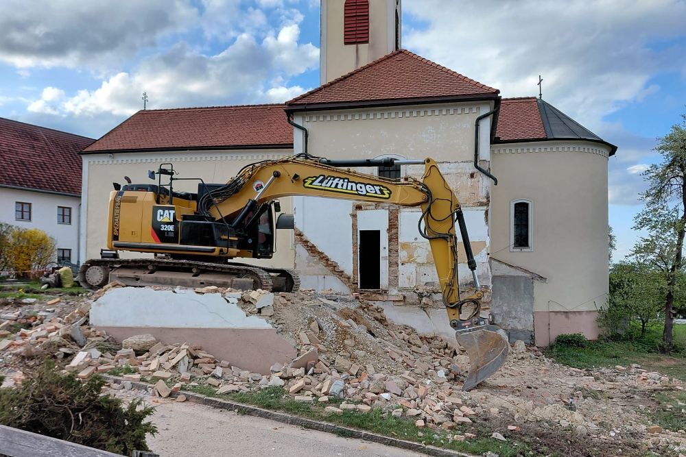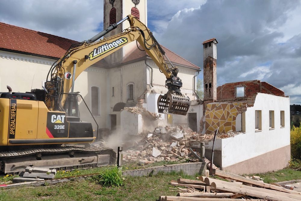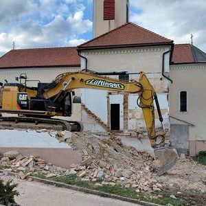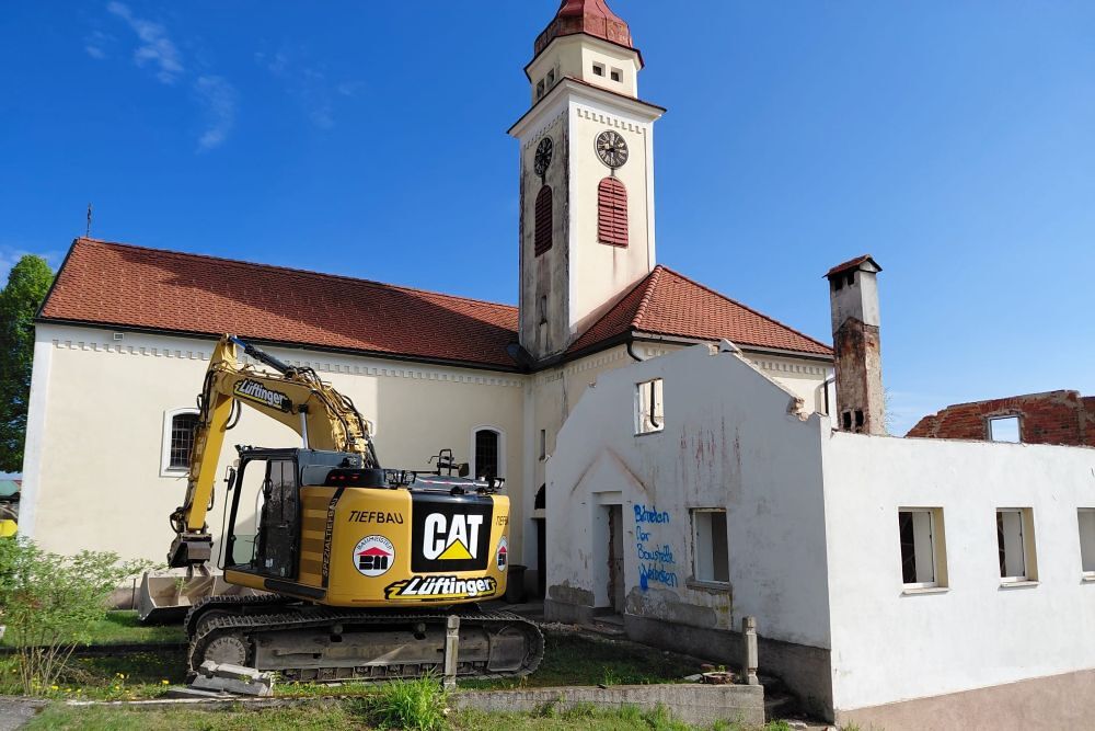 Zuerst wurde der Kamin gesperrt, dann die alte Sickergrube. Alles überlegen, planen und rechnen hat nichts genützt. Um das Haus in einen bewohnbaren Zustand zu versetzen, hätte sehr viel Geld in die Hand genommen werden müssen. Schweren Herzens beschloss der Pfarrgemeinderat den Abbruch des Gebäudes.