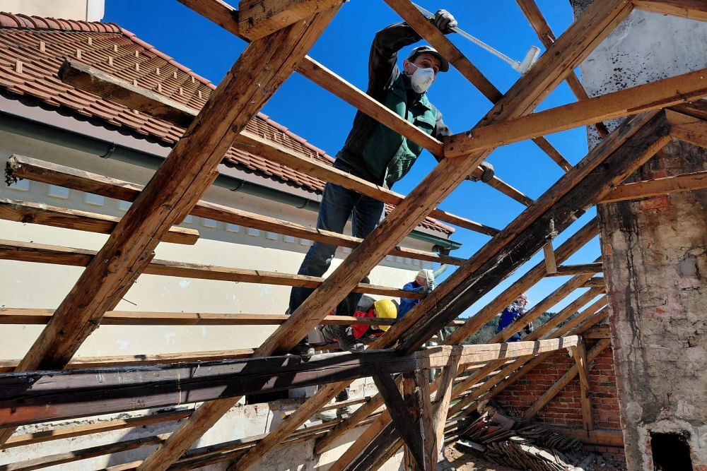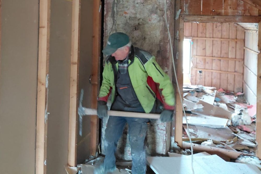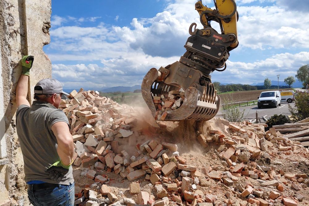 Im April war es dann so weit. Unser Bauteam hat mit dem Entkernen des Mesnerhauses vollen Einsatz und großartige Leistung erbracht. Mit dem Bagger war es dann schnell vorbei mit dem Mesnerhaus in der Wim.