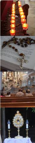 Das hat, beginnend im Mittelalter, zu verschiedenen Formen der Anbetung vor dem ausgesetzten Allerheiligsten geführt. Verteilt auf die einzelnen Kirchen und Klöster wird immer irgendwo in der Diözese vor dem Leib Christi gebetet. Unsere Pfarre hat jedes Jahr am 11. September Anbetungstag.