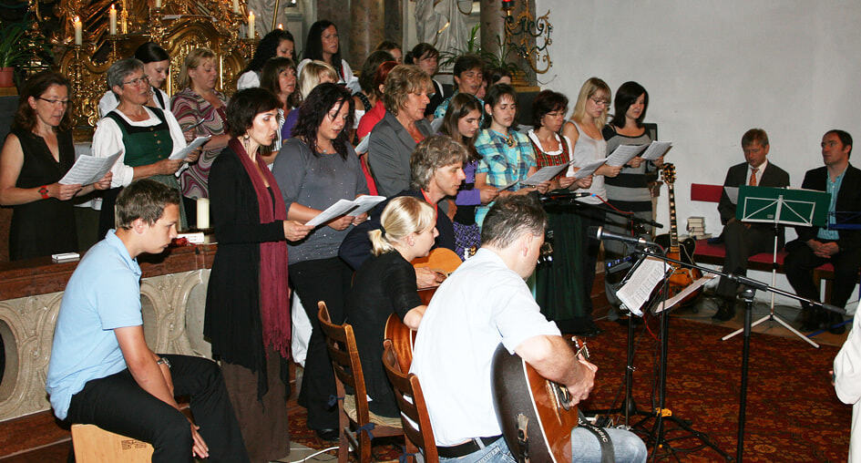 Ein gemeinsamer Chor aus Mitgliedern der Mütterrunde und Verwandten der Jubilare gestalteten eine rhythmische Messe. Nach der Messe gab es am Kirchenplatz einen Sektempfang.