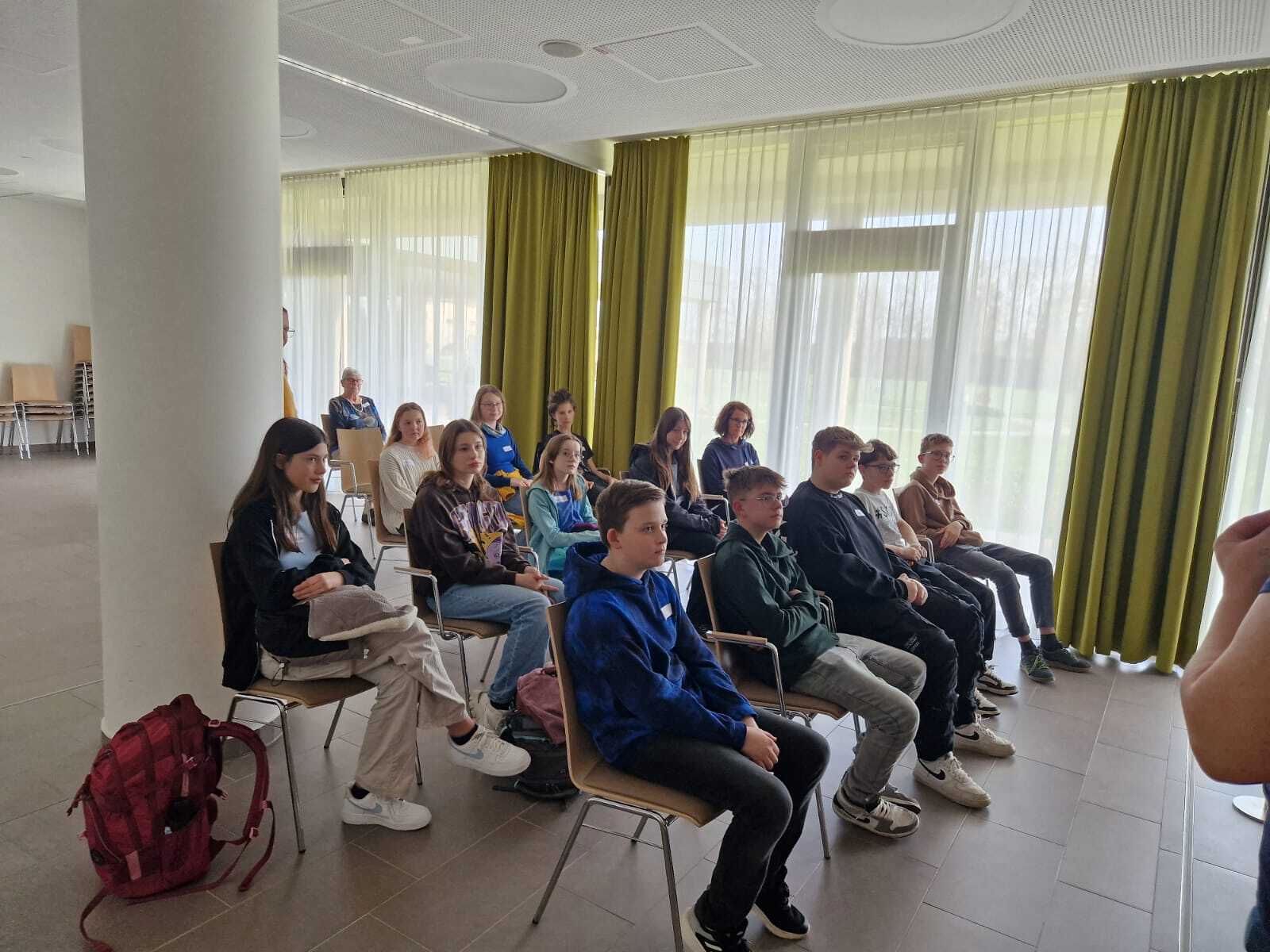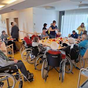 Beim ersten gemeinsamen Treffen von Firmlingen und BewohnerInnen im Seniorium wurden fleißig Blumen für den Maibaum gebastelt.