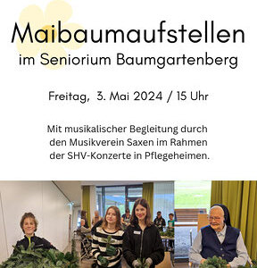 Am Freitag, 3. Mai, 15 Uhr, wird der Maibaum vor dem Seniorium aufgestellt, also sichtbar für alle, die zum Parkplatz oder zur Kirche kommen.