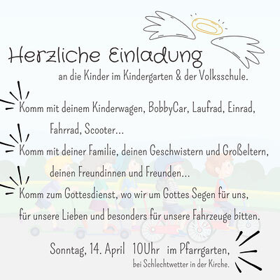 Es wurden Fahrräder, Laufräder, Roller, Inline Skater und Bobbycar gesegnet! Wir wünschen allen Kindern mit ihren Fahrzeugen "Gute Fahrt" und vergesst nicht: Fahr nicht schneller als dein Schutzengel fliegen kann...!!!