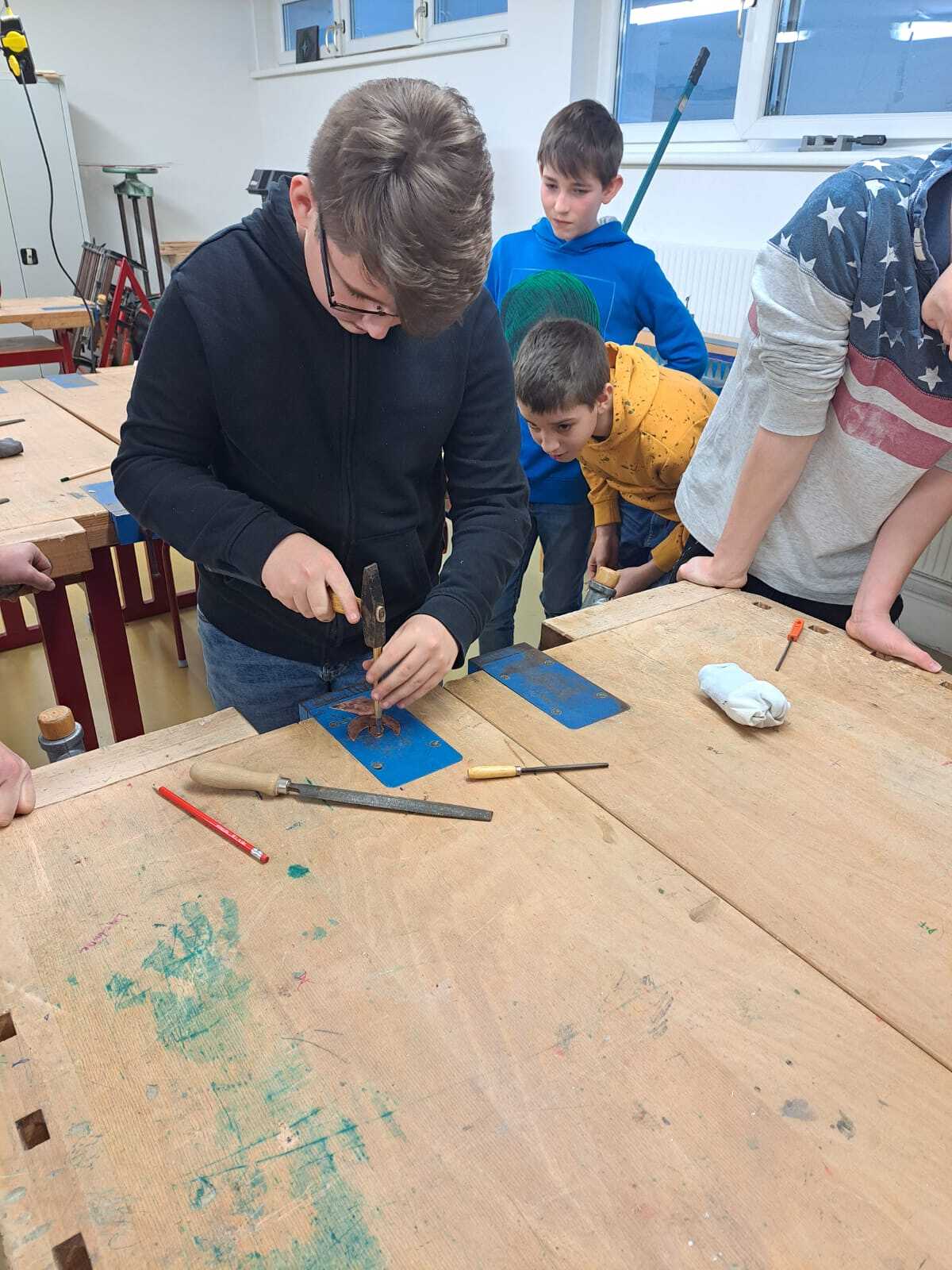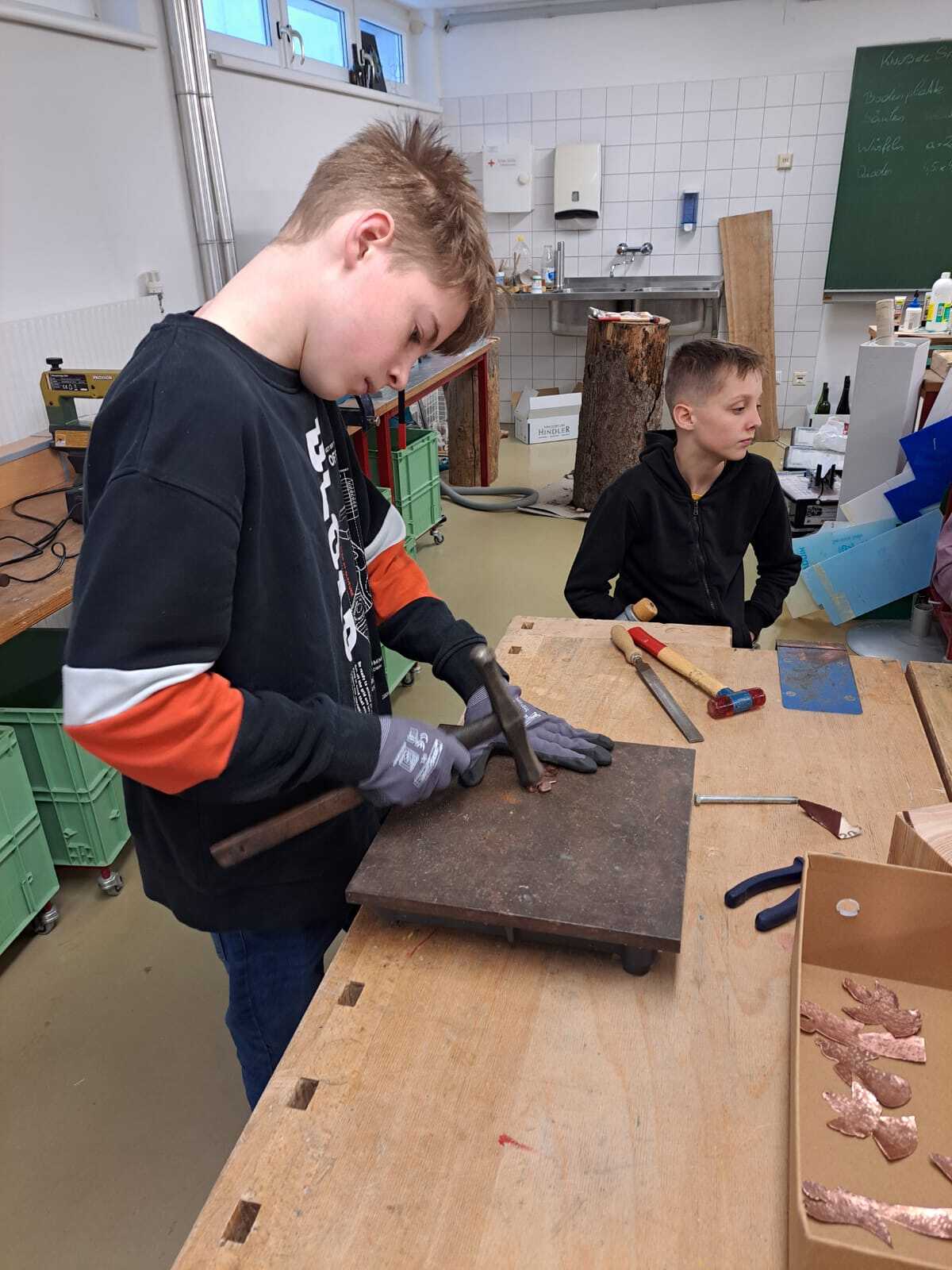 In zwei Gruppen an zwei Wochenenden, arbeiteten zahlreiche Firmlinge an den Kupferengeln.