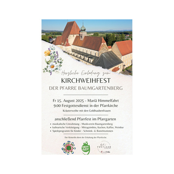 Danach lädt der Pfarrgemeinderat zum Pfarrfest in den Pfarrgarten. Für die musikalische Umrahmung sorgt eine Abordnung des Musikvereins Baumgartenberg. Für die Kinder gibt es ein Spieleprogramm mit Schmink- und Bastelstationen. Für Speis und Trank ist gesorgt mit einem Mittagsimbiss, Kaffee und Kuchen sowie einer Weinbar.