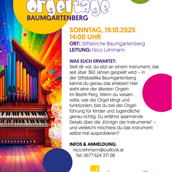 Herzliche Einladung am Sonntag, 19. Oktober um 14 Uhr zum KinderOrgeltag mit Nico Lehmann in unserer Stiftskirche. Du erfährst spannende Details über die „Königin der Instrumente“ und darfst diese auch selbst ausprobieren!