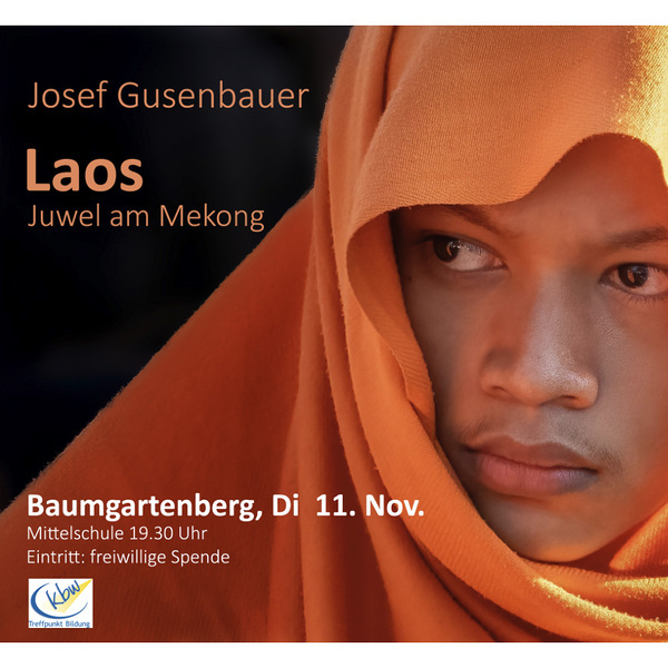 Wie in all seinen Vorträgen stellt Josef Gusenbauer die Menschen dieses südostasiatischen Landes in den Mittelpunkt seiner Multivisionsschau, sei es beim That Luang Festival, dem größten buddhistischen Fest, mit ihren farbenprächtigen Roben oder in ihrem täglichen Alltag in einem abgelegenen, einfachen und armen Bergdorf, in dem die Zeit stillzustehen scheint.