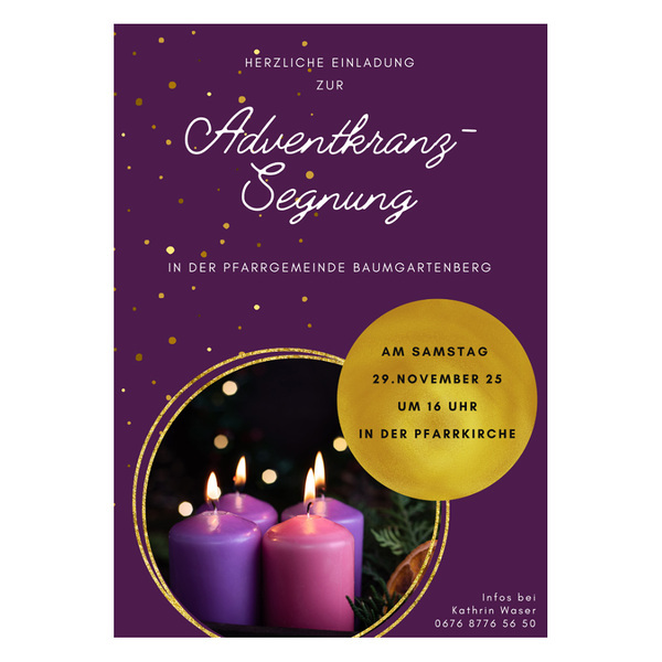 Samstag, 29. November 2025 um 16 Uhr - Adventkranzsegnung in der Pfarrkirche Baumgartenberg