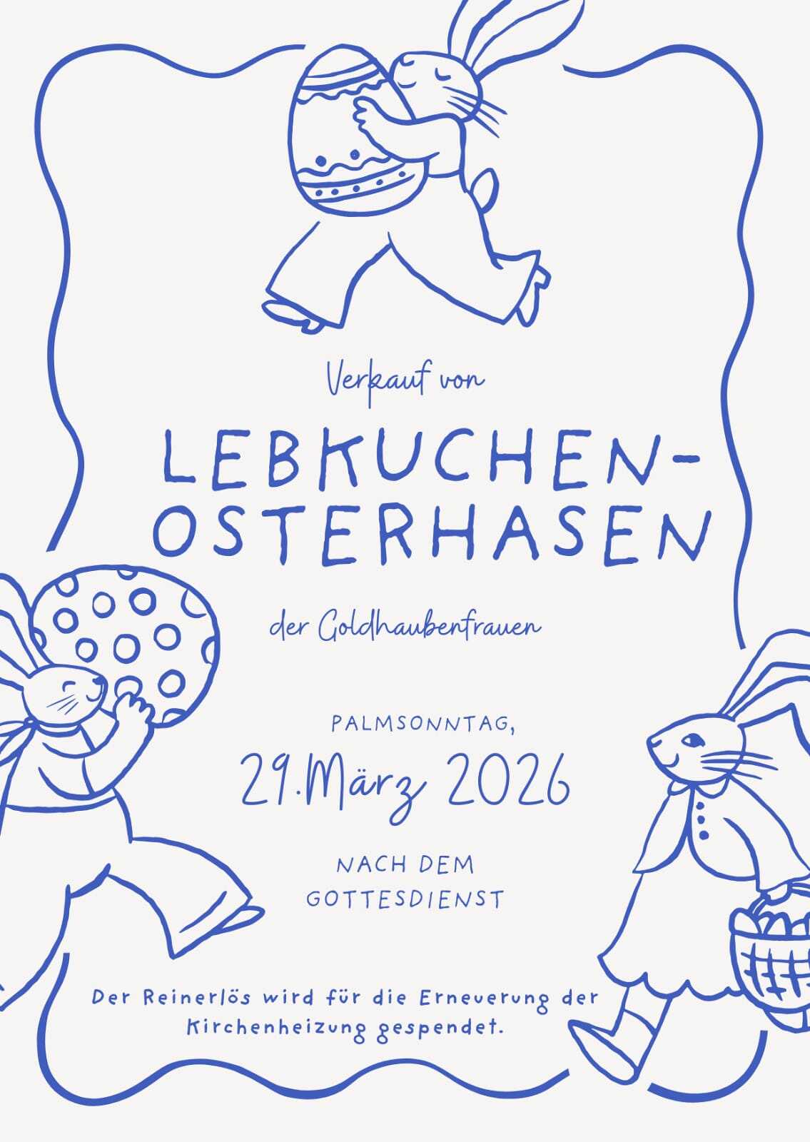 Die Goldhaubenfrauen verkaufen am Palmsonntag nach dem Gottesdienst Lebkuchen-Osterhasen. Der Erlös kommt der Erneuerung der Kirchenheizung zugute.