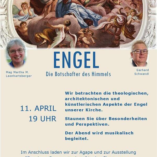 Martha Leonhartsberger betrachtet Engel von der theologischen Seite, während Gerhard Schwandl besondere Details der Engel in der ehemaligen Stiftskirche vorstellt. Die Besucherinnen und Besucher werden staunen, was hoch oben in den Fresken tatsächlich darge-stellt ist.