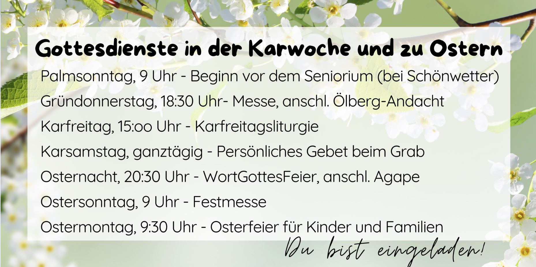 In der Karwoche und zu Ostern lädt die Pfarrgemeinde Baumgartenberg zu folgenden Gottesdiensten ein: