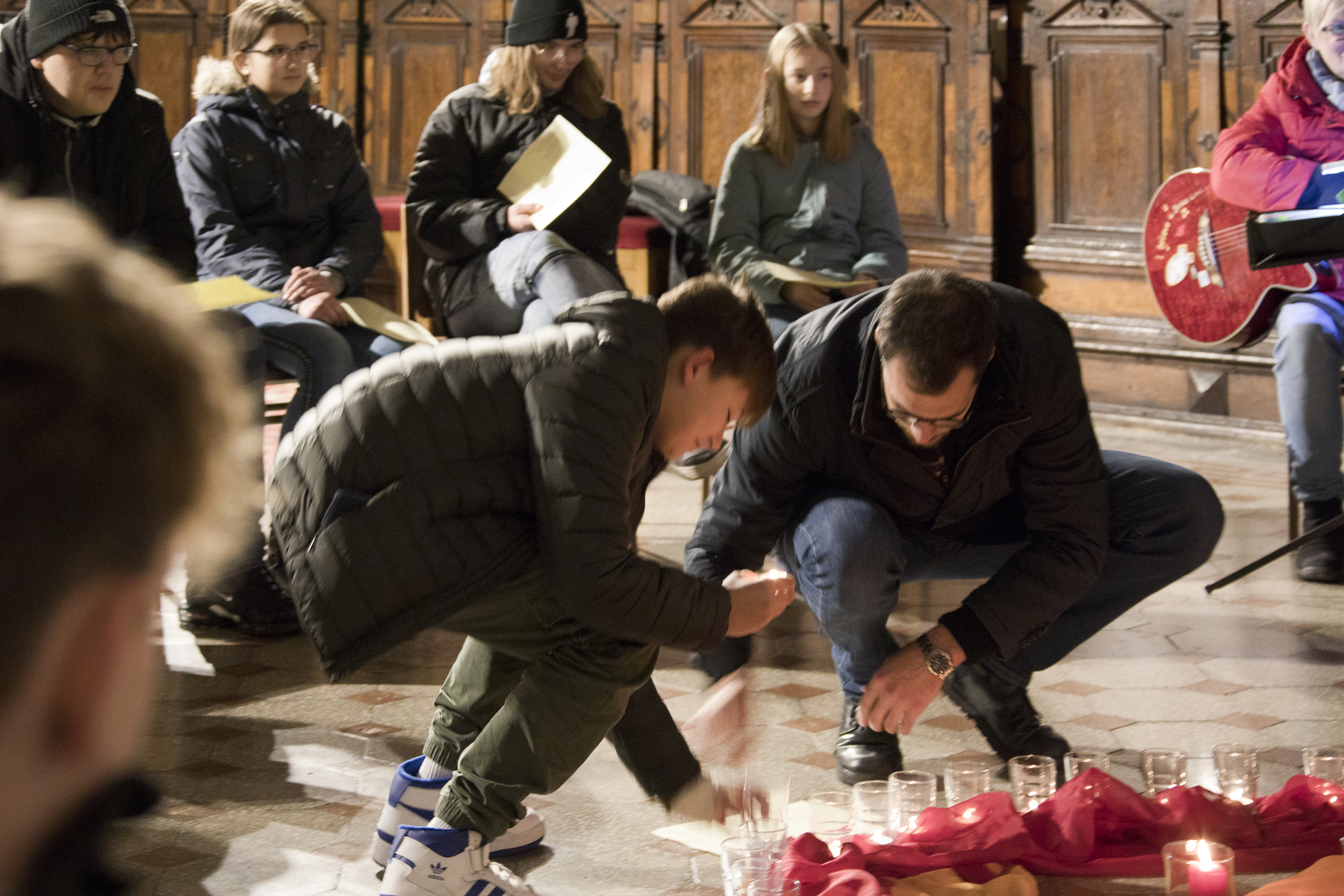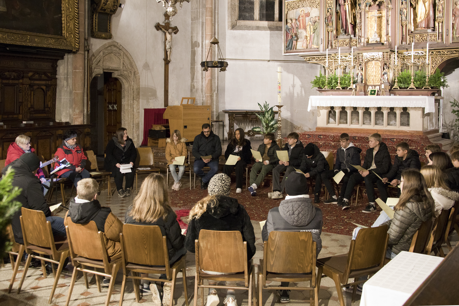 32 von 34 angemeldeten FirmkandidatInnen trafen sich mit Pastoralassistentin Elisabeth Kronreif, die für die Firmvorbereitung der Braunauer KandidatInnen verantwortlich zeichnet, Kaplan Philipp Faschinger und der Firmbegleiterin der Stadtpfarre St. Stephan, Inge Fink, zum gemeinsamen Firmstart. Musikalisch wurde das Treffen von Renate Pichler begleitet. Nach einem Abendgebet und einer kurzen Einführung in die Bedeutung des Firmsakramentes erhielten die FirmkandidatInnen Überlegungen zu den Sieben Werken der Barmherzigkeit und den abschließenden Segen mit auf den Weg. Beendet wurde das Treffen mit der Einteilung in die Firm-Kleingruppen.