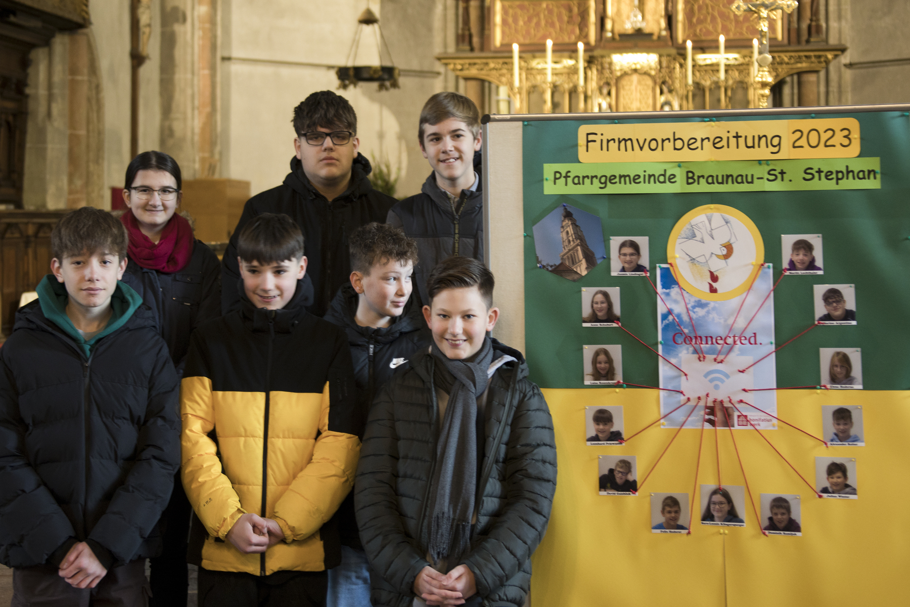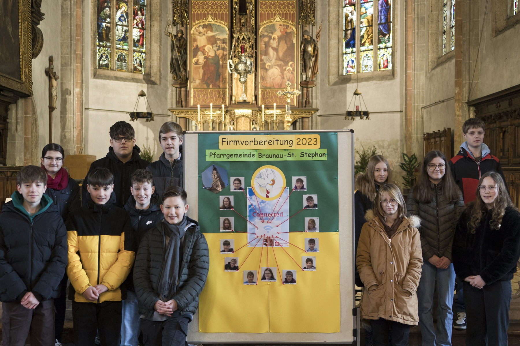 13 Jugendliche (5 Mädchen, 8 Burschen) bereiten sich in der Pfarrgemeinde St. Stephan bereits seit einigen Wochen auf den Empfang des Firmsakraments auf verschiedene Art und Weise vor. Einige von ihnen waren im Jänner als Sternsinger unterwegs, bereits die Hälfte der Firmvorbereitungsstunden wurde abgewickelt und in der nächsten Zeit stehen noch einige Punkte auf dem Programm: Kreuzwegandacht für Jugendliche, Teilnahme an der Spirinight in Ranshofen, "Ratschen" auf den großen Holzratschen am Turm der Stadtpfarrkirche in der Karwoche und Absolvieren des Firmlinge-PatInnen-Wegs rund um Braunau.