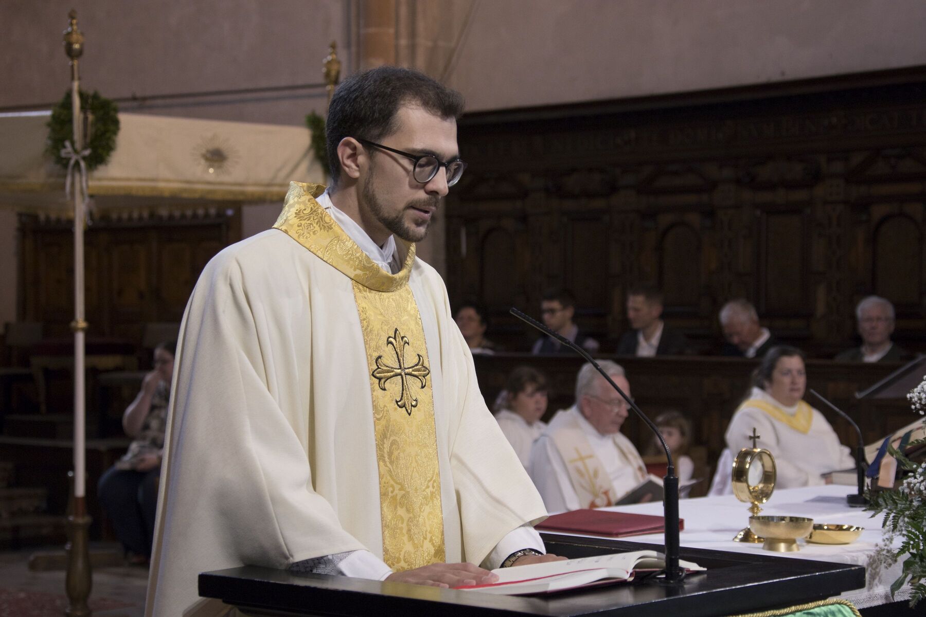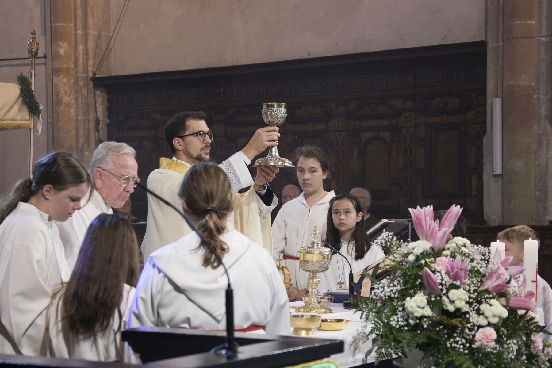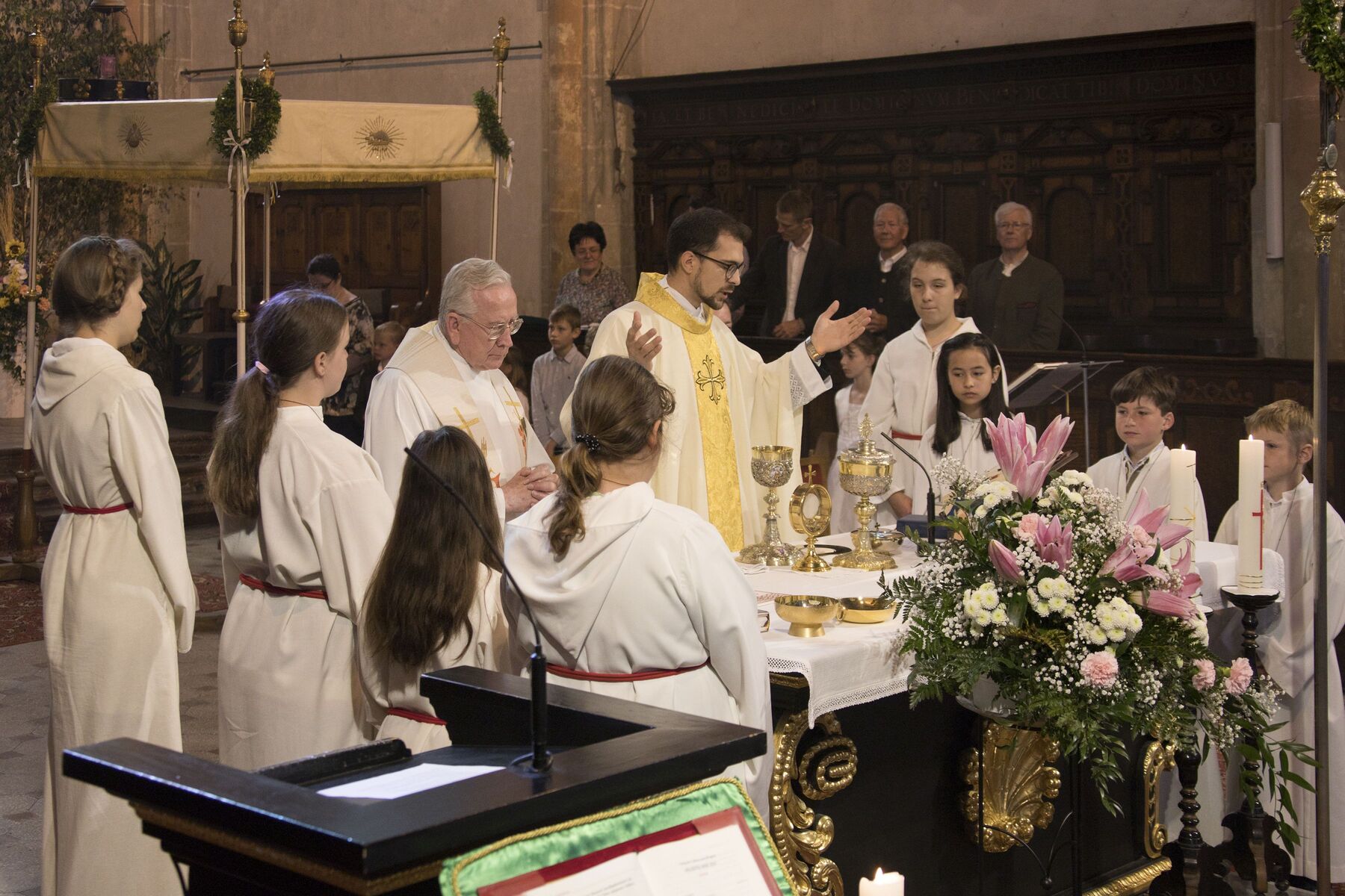 Der herrliche Frühsommertag trug das Seine zum schönen Verlauf und zur festlichen Stimmung bei der gemeinsamen Feier der drei Braunauer Pfarren Maria Königin, St. Franziskus und St. Stephan bei. Den Festgottesdienst in der Stadtpfarrkirche St. Stephan feierten Kaplan Philipp Faschinger, Monsignore Stefan Hofer und Seelsorgerin Elisabeth Kronreif mit einer großen Feiergemeinde, Vertretern der Stadt Braunau, Abordnungen verschiedener Vereine, Erstkommunionkindern und vielen Männern und Frauen aus den Pfarrgemeinden.