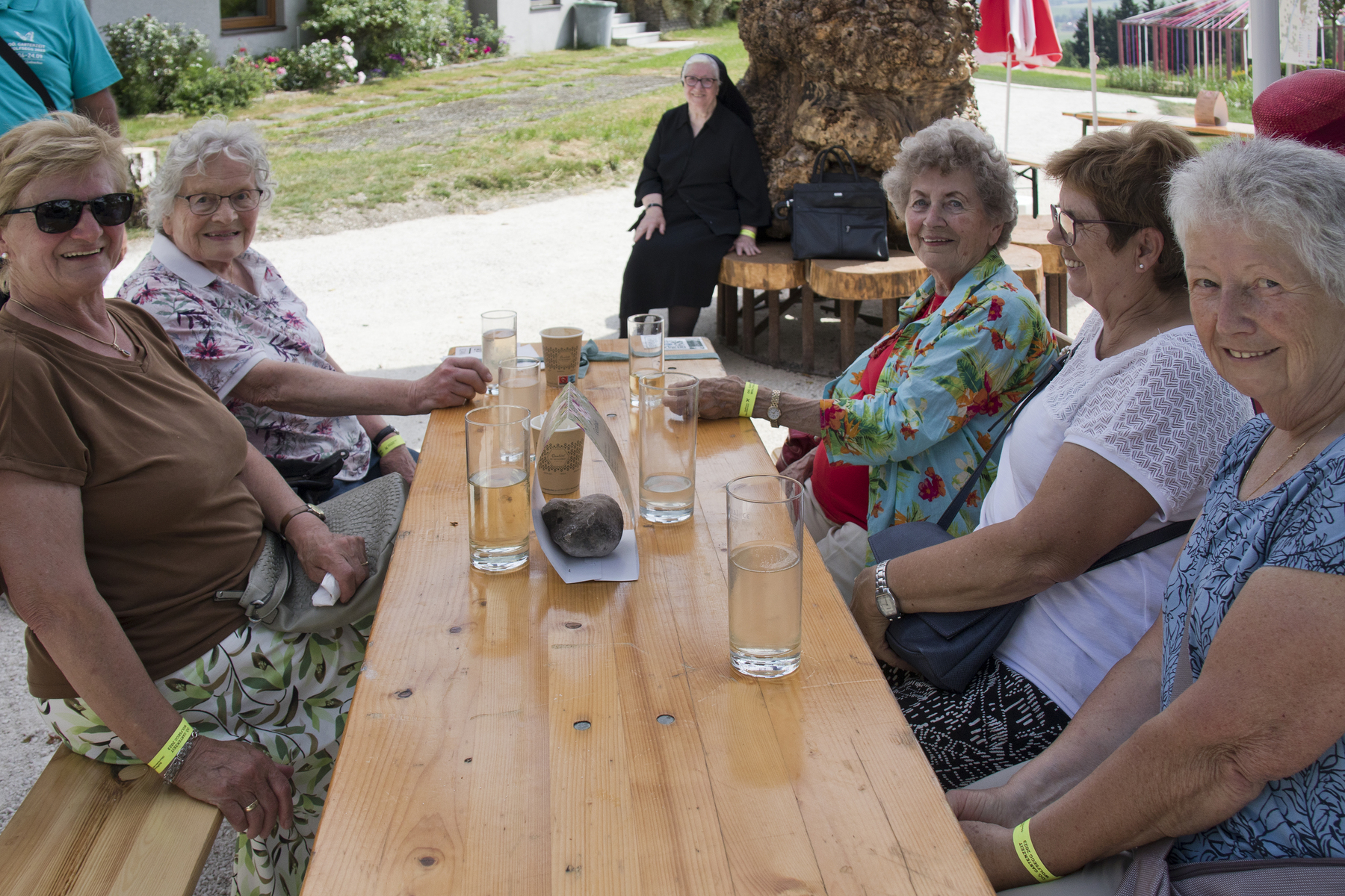 Der von der ehemaligen kfb-Obfrau Christa Gratzl in bewährter Weise organisierte Frauenausflug führte heuer zunächst - im kulturellen Teil - zum Stift Lambach, wo die TeilnehmerInnen, die von Kaplan Philipp Faschinger begleitet wurden, eine interessante Führung durch Kirche und Stift erwartete. Nach der Feier der Heiligen Messe ging es zum Mittagessen in den Stiftskeller und dann per Bus weiter zur Landes-Gartenschau "Hang zur Vielfalt" nach Wolfsegg. Bei der Führung durch die Gartenschau über die Hügel des Hausruckviertels konnte man die schöne Aussicht über das oberösterreichische "Landl" genießen, obwohl wegen der fast "tropischen" Temperaturen die Suche nach einem schattigen Plätzchen stets Vorrang hatte.