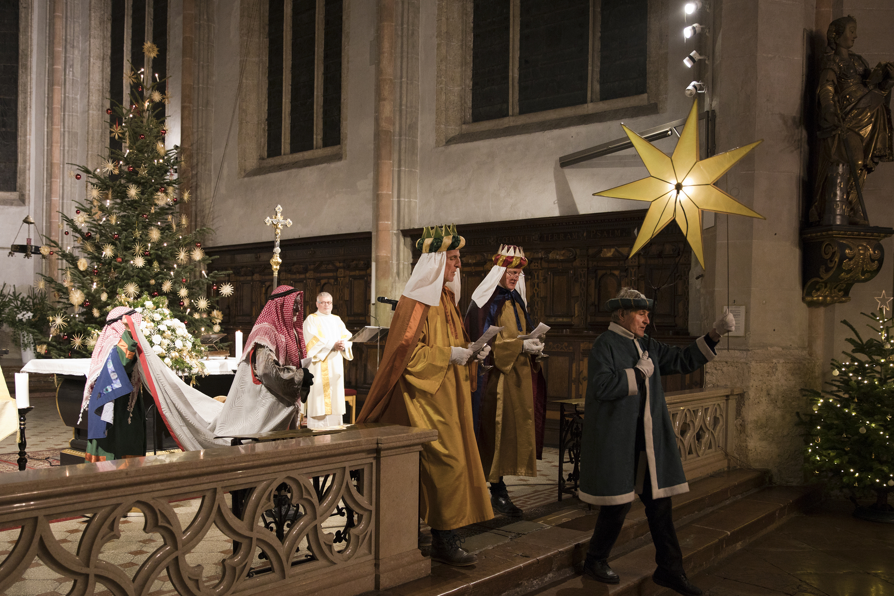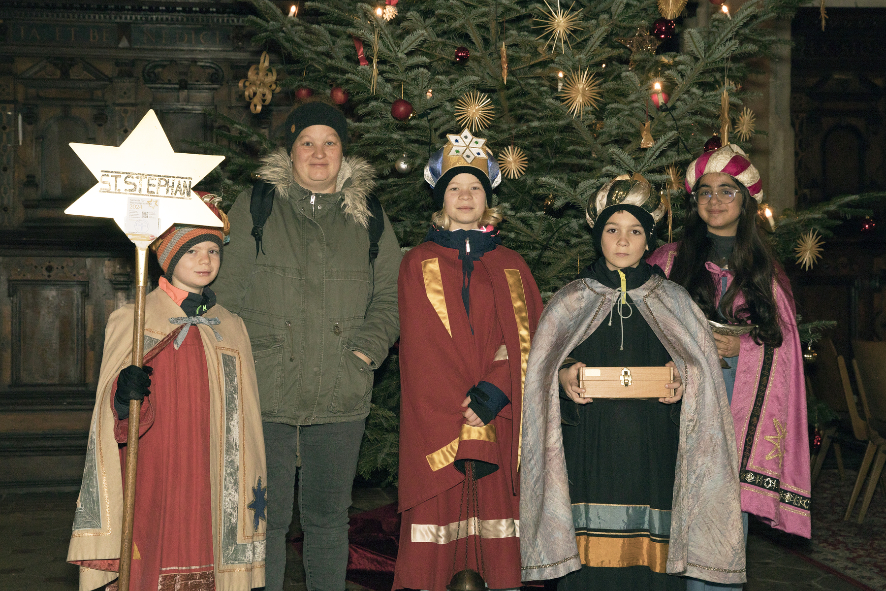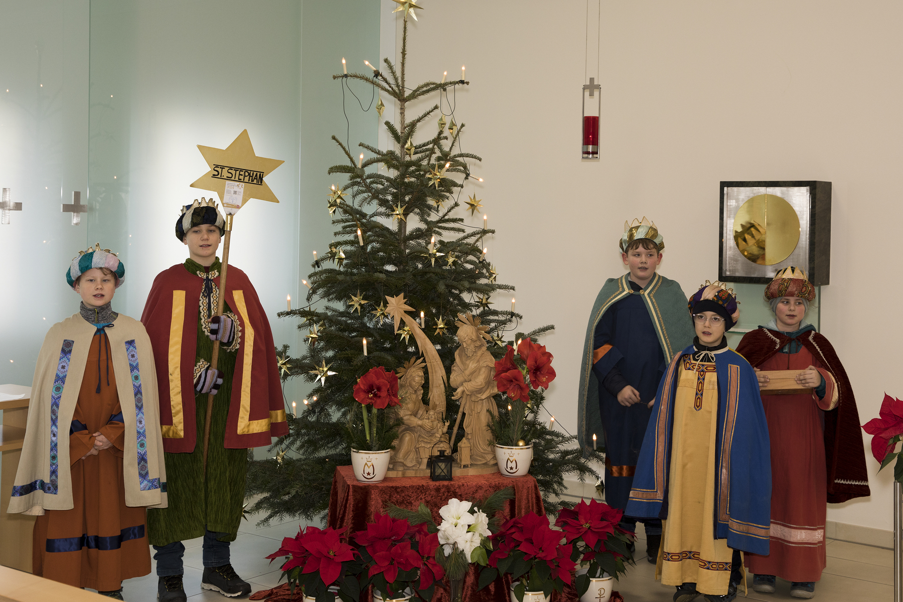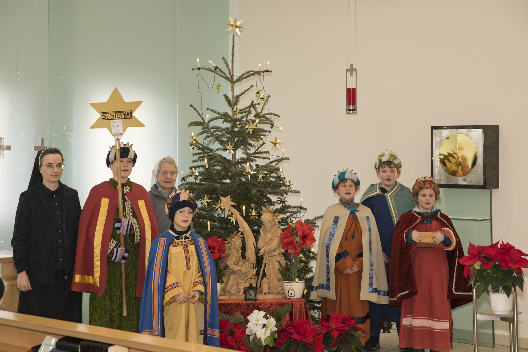 Die Wege der "Großen und kleinen Könige und Königinnen" kreuzten sich schließlich zum Abschluss am Abend des Festtages Epiphanie (6. Jänner) in der Stadtpfarrkirche St. Stephan zur Krippen- und Dreikönigsandacht. Die kleinen Könige und Königinnen waren als solche äußerlich zwar nicht mehr erkennbar, aber trotzdem mit Eifer dabei und begleiteten in einer Lichterprozession die "Großen Könige" zur Krippe und bei der Andacht, die Diakon Hans Silberhumer liturgisch leitete. Diese Krippenandacht bildet seit vielen Jahren den Abschluss der besonders feierlich gestalteten Feste zur Weihnachtszeit.