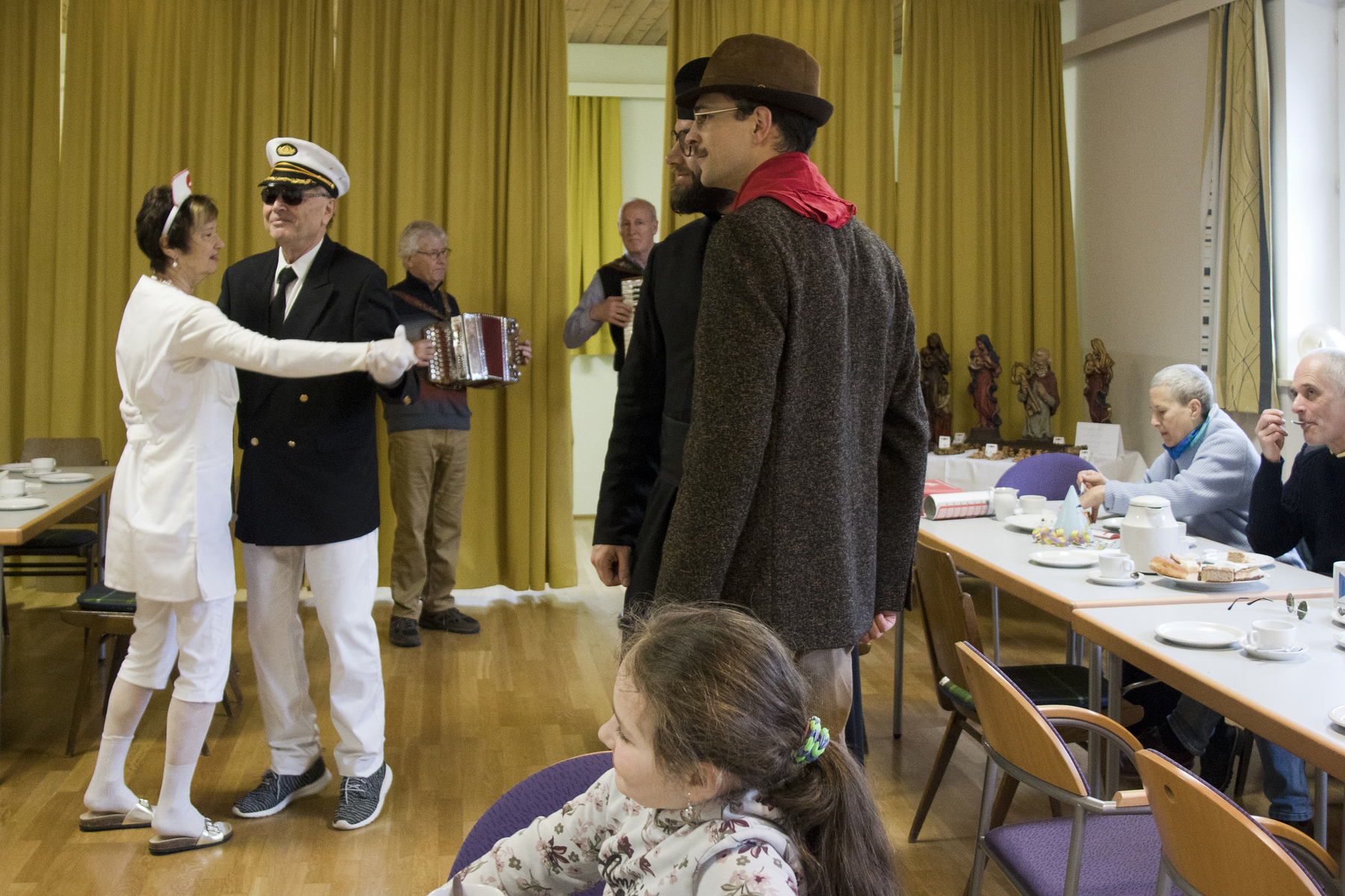 Natürlich gab es auch Faschings-Gaudi für die "Großen" beim musikalischen Pfarrcafé des Pfarrgemeinderates am Faschingsonntag. Herbert Hauser und Rudi Pommer sorgten für die schwungvolle Begleitung beim Tanzen und Singen. Besonders erstaunt waren alle Gäste, dass sich in Zeiten des Priestermangels ein junger, dynamischer "Neupriester" als Überraschungsgast der Pfarrgemeinde vorstellte!