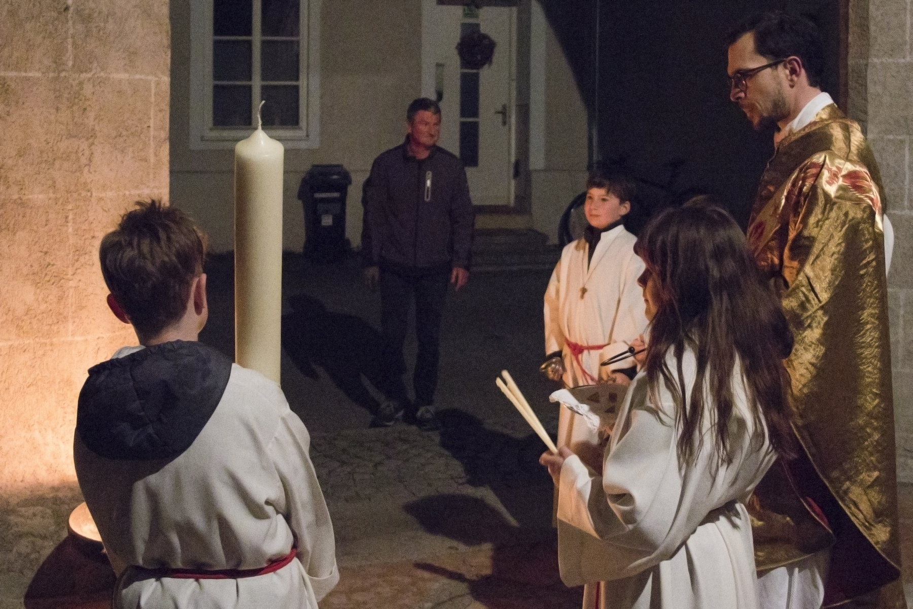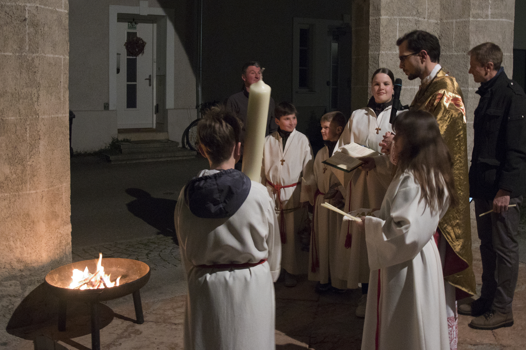 Am Abend trafen sich viele Gläubige zur festlichen Feier der Auferstehung mit vorangehender Feuerweihe.