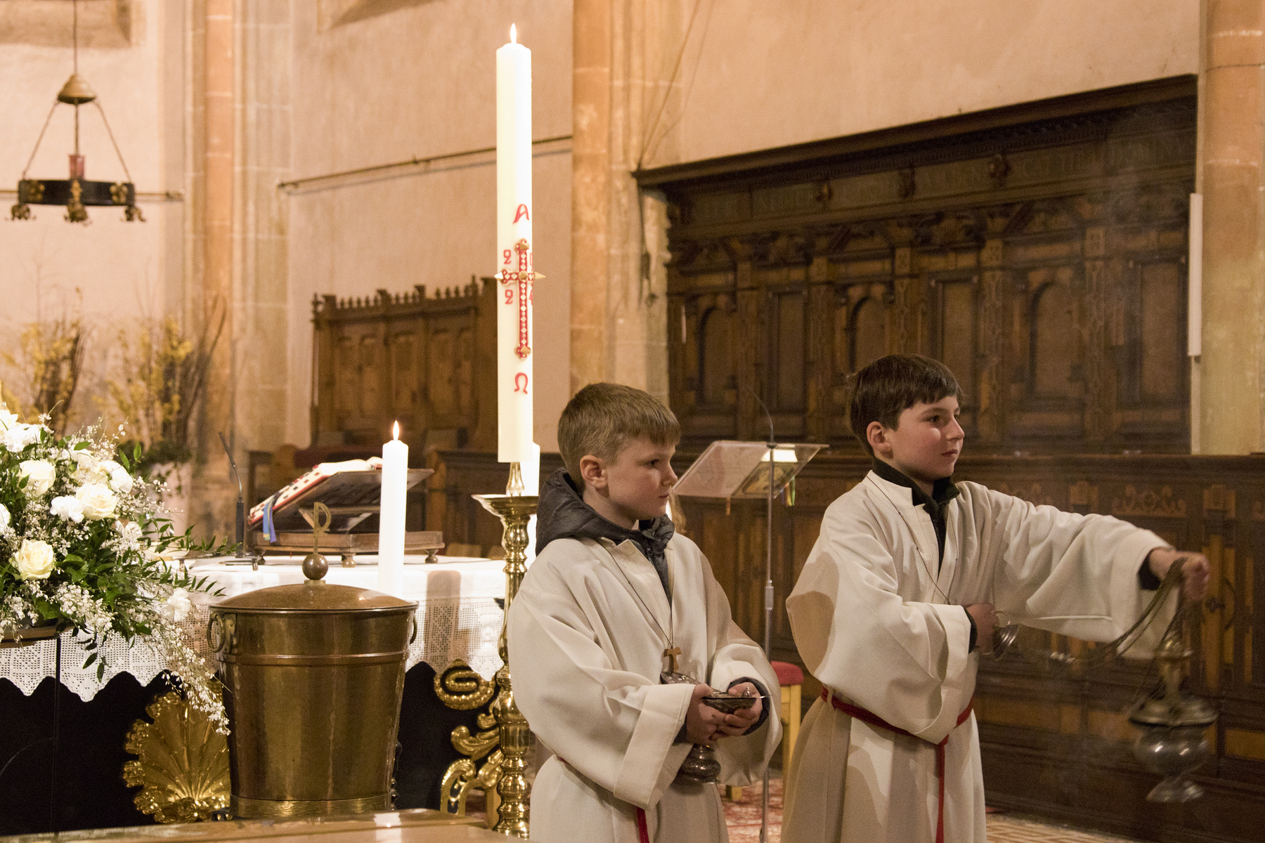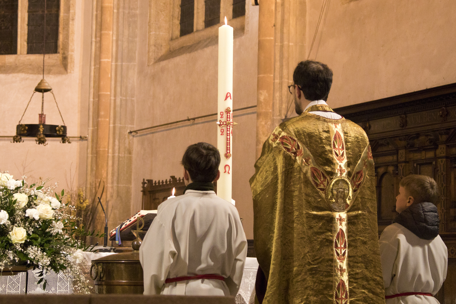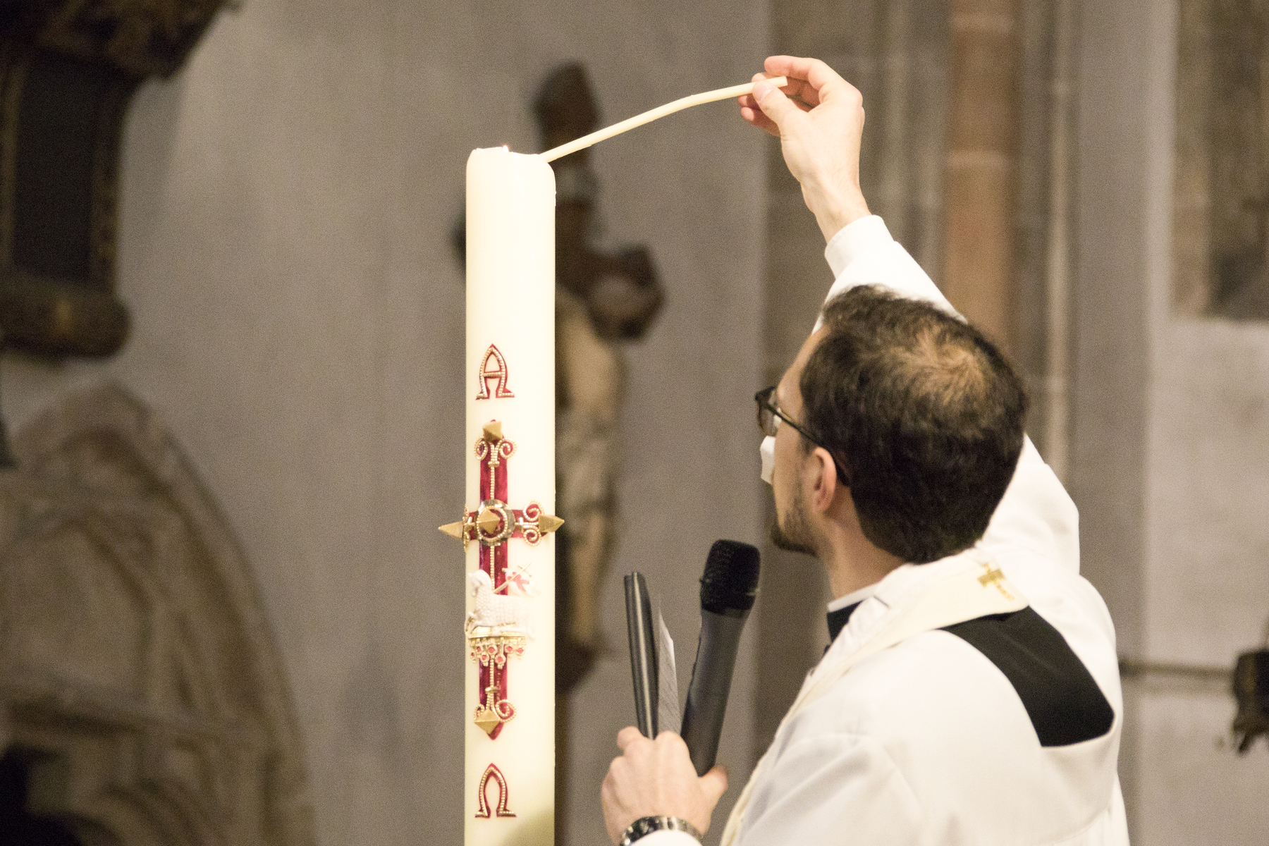 In ihrem vollen Glanz erstrahlte die Stadtpfarrkirche St. Stephan nach der langen Zeit der Kargheit in der Liturgie am Karsamstag zur Auferstehungsfeier für Familien und Kinder bzw. abends zur Feier der Osternacht.