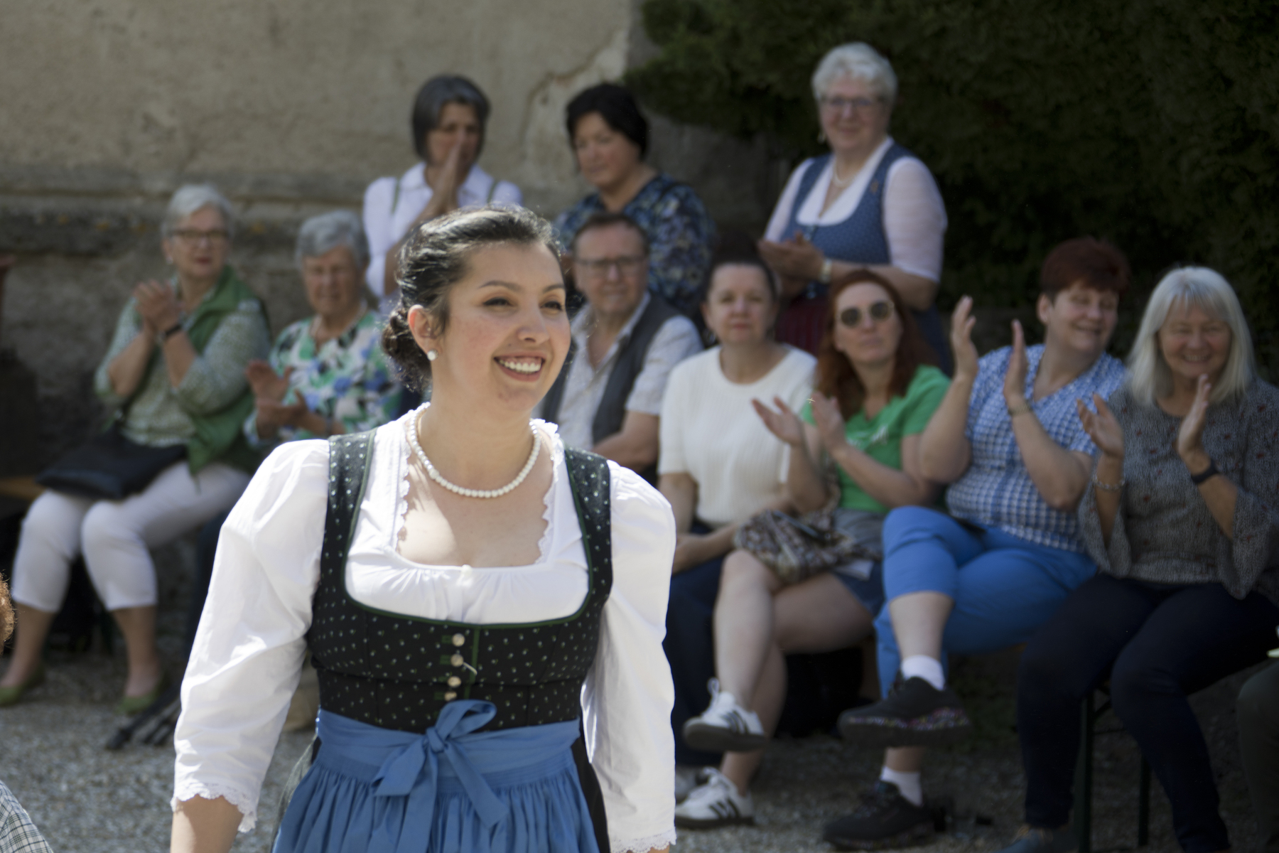 Bei Kaffee und Kuchen, wofür das Team Gemeinschaft der Pfarrgemeinde gesorgt hatte, konnte man sich zwischendurch stärken und vor dem Rahmenprogramm mit Frisuren-Tipps der Profi-Friseurmeisterin Patricia Dunhofer oder dem Vortrag der früheren Goldhauben-Obfrau Hermine Oberhuemer über Trachten eine kleine Pause einlegen.