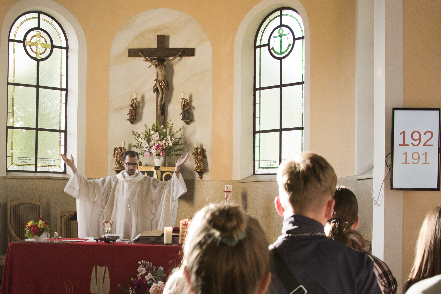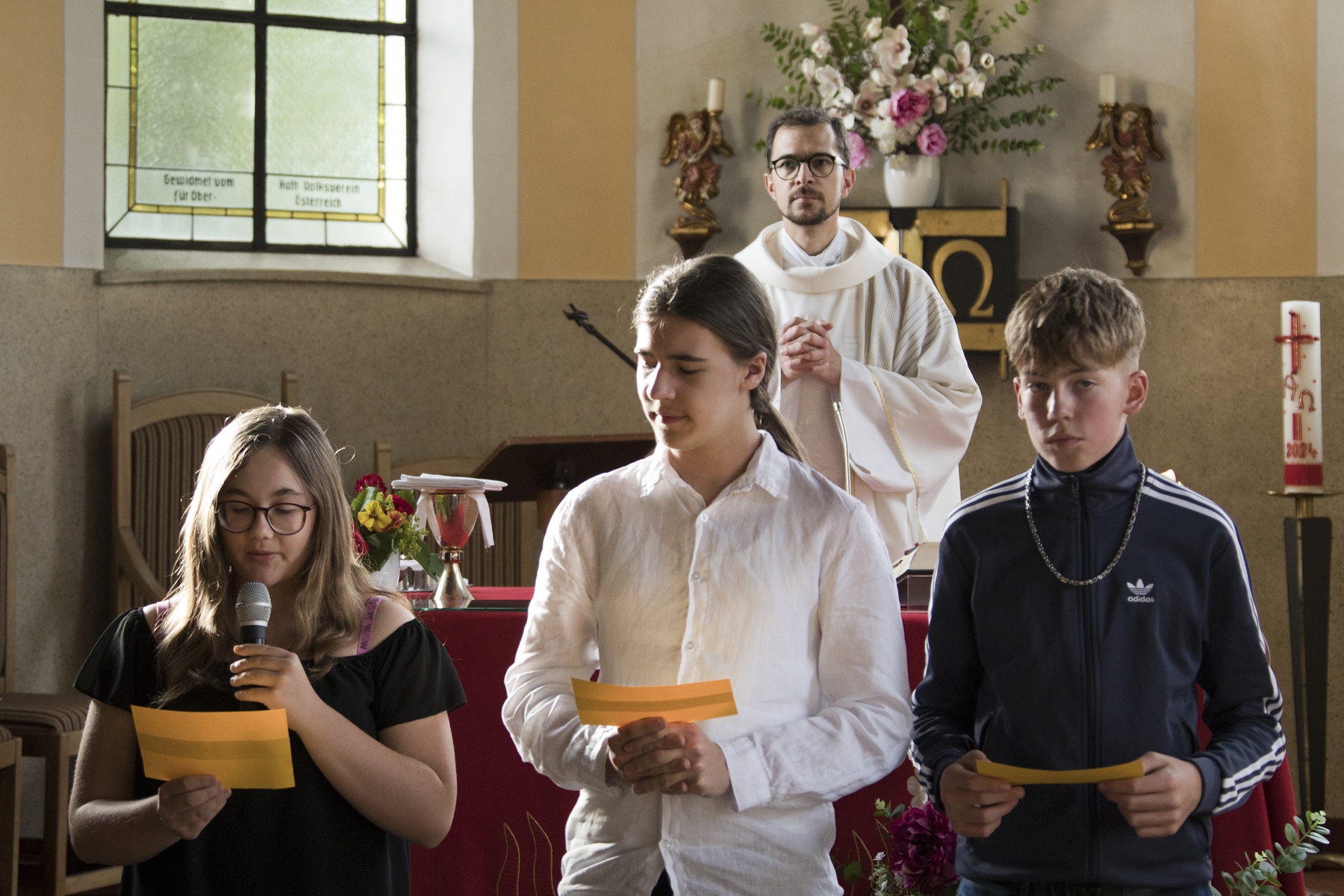 Die drei Braunauer Pfarrgemeinden Maria Königin, St. Franziskus und St. Stephan entsandten ihre Firmkandidatinnen und -kandidaten in einem gemeinsamen Gottesdienst in der Pfarrkirche Höft. Ungefähr ein halbes Jahr begleiteten die BetreuerInnen Cornelia Lauschmann, Magdalena Fuchs, Matea Sekerija, Inge Fink gemeinsam mit Kaplan Philipp Faschinger die Firmlinge auf ihrem Weg der Firmvorbereitung. Auf verschiedenste Art und Weise konnten die Jugendlichen erfahren und erleben, was es bedeutet, sich auf ein Leben mit Gott an seiner Seite einzulassen. Zu den regelmäßigen Treffen in den Pfarrgemeinden kamen die Auswahlmöglichkeiten zwischen Ausflugsangeboten wie ein Tag in Salzburg mit Besuch der Bibelwelt und Spaß im Soccerpark, ein Wochenende in Windischgarsten oder eine Wallfahrt mit dem Gedenken an den Seligen Franz Jägerstätter nach St. Radegund. Auch im praktischen Einsatz in den Pfarrgemeinden waren die Jugendlichen tätig, zum Beispiel bei Pfarrcafés, beim Sternsingen, beim Ratschen vom Turm des "Steffl" oder bei Besuchen im Seniorenheim.