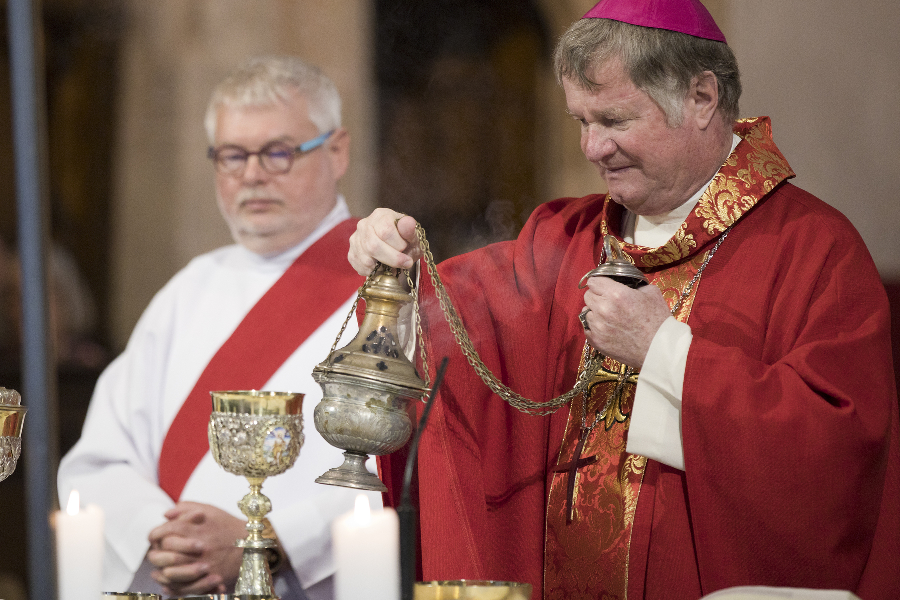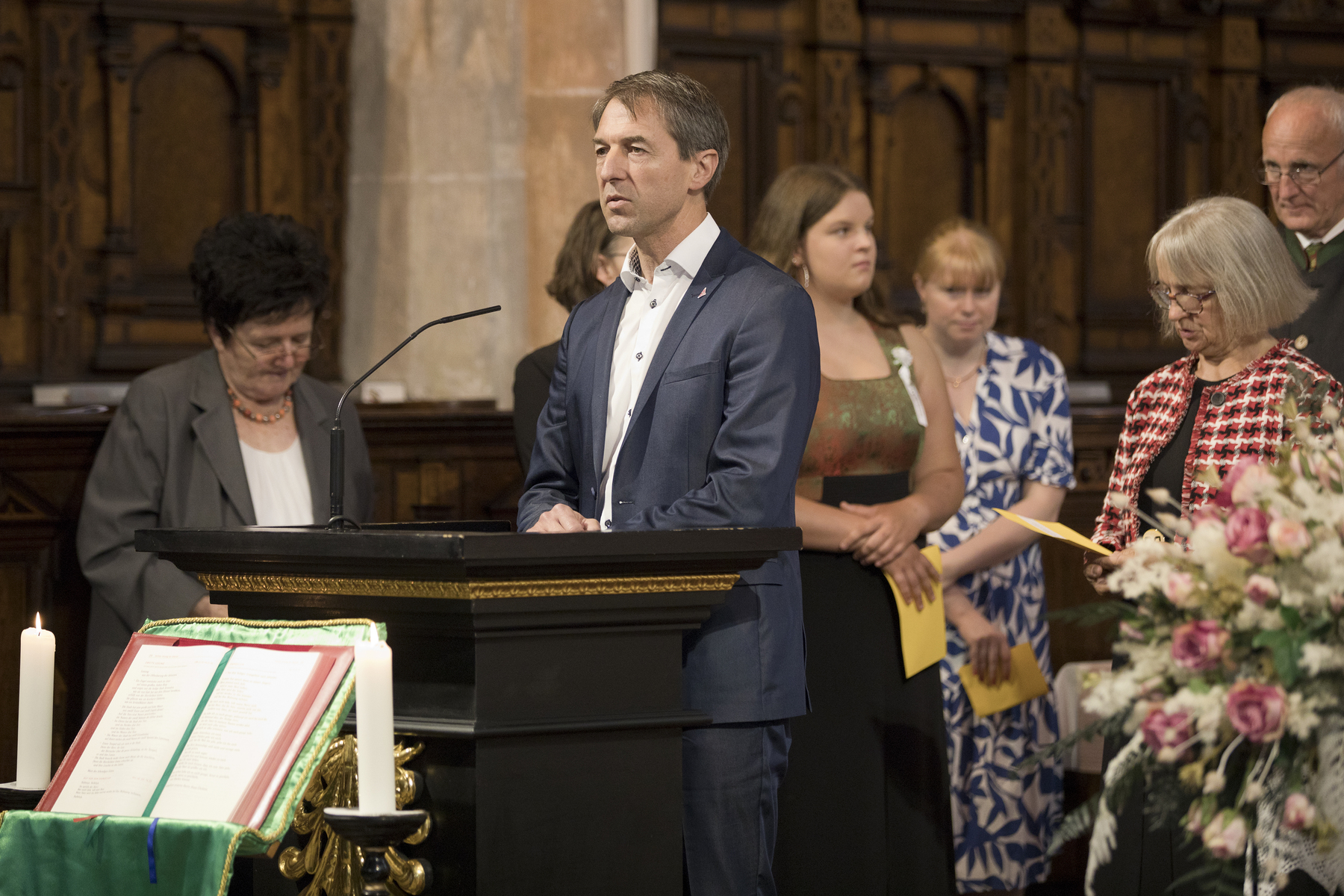 Als Ausgangspunkt seiner Predigt lud Bischof Manfred die Firmkandidatinnen und -kandidaten, die jeweils von zahlreichen Familienangehörigen und FreundInnen begleitet gekommen waren, zum Nachdenken darüber ein, welchen "Wert" ein menschliches Leben eigentlich besitzt, ob man diesen "Wert" überhaupt in Geld ausdrücken könne bzw. wie wertvoll wir vor Gott letztlich sind.