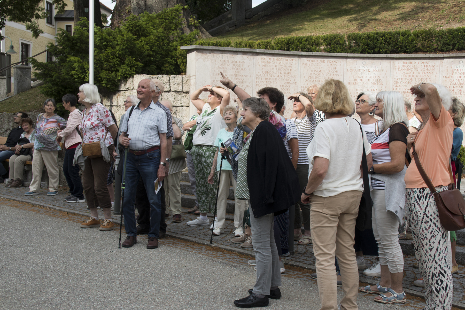 Gestärkt ging es nach dem Mittagessen wieder Richtung Heimat, jedoch nur bis Aspach, wo die Gruppe zu einer Führung im sehenswerten Daringer-Museum Gelegenheit hatte. Frau Oberleitner wusste viel Interessantes über die Künstler-Dynastie der Daringers zu erzählen und begleitete die Gruppe auch zu den Objekten im Ortsbereich von Aspach.