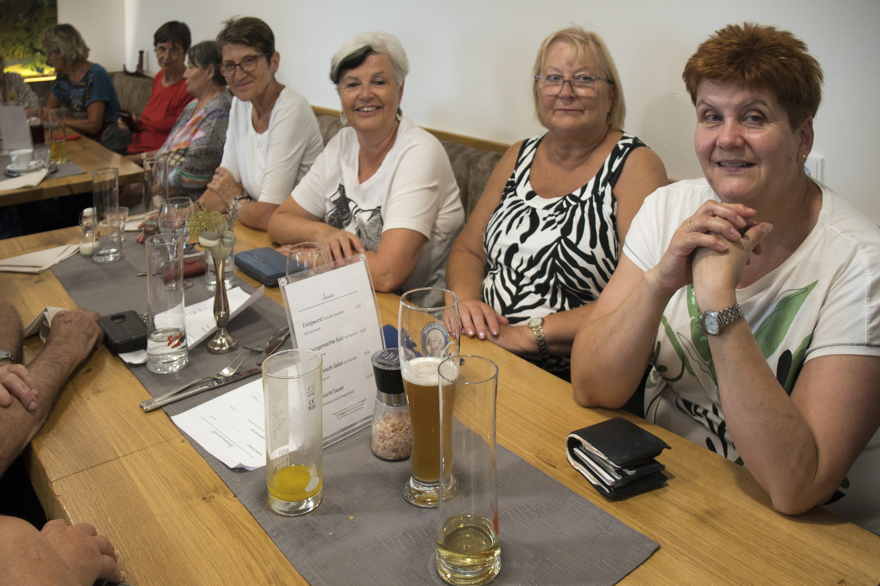 Auf der Weiterfahrt Richtung Braunau legte die Gruppe noch eine Pause im Gasthaus Berger in St. Peter ein, stärkte sich vor dem Heimkommen und konnte dabei in der sicheren und trockenen Gaststube gelassen beobachten, wie der Himmel zum Abschluss des schönen Ausflugstags seine Schleusen zu heftigsten Regengüssen öffnete.