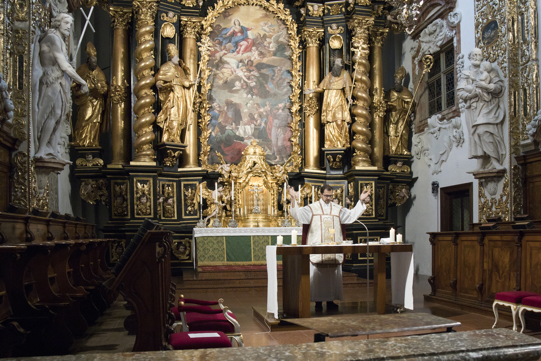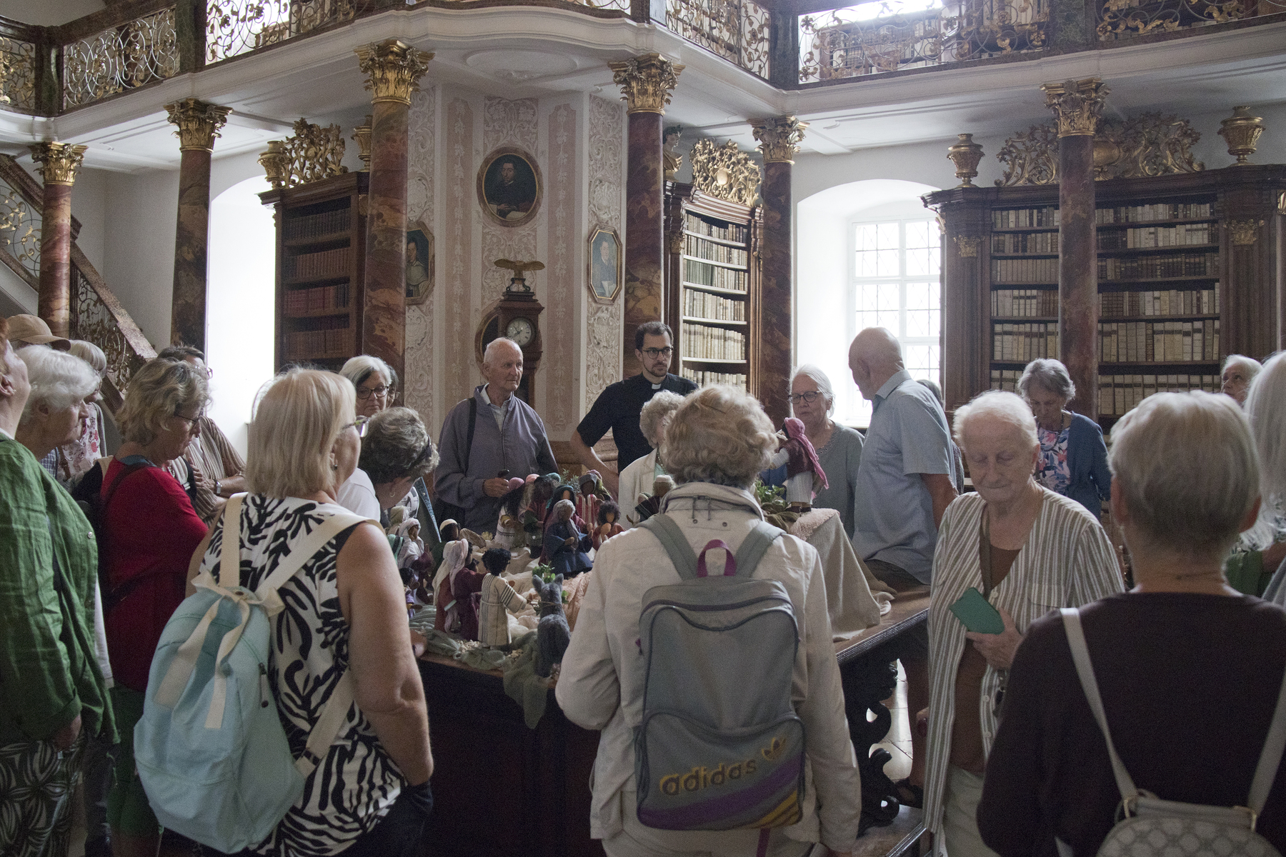 Bei idealem Reisewetter - trocken, aber nicht zu heiß - machten sich 28 Frauen von St. Stephan und aus benachbarten Pfarrgemeinden mit Kaplan Philipp Faschinger und zwei weiteren "mutigen" Männern beim Frauenausflug auf den Weg zum Stift Schlierbach als erste Station. Nach der Messfeier in der wunderschönen, frisch renovierten Stiftskirche erwartete die TeilnehmerInnen eine interessante Führung durch die weitläufige Anlage des Stiftes, die Bibliothek, das Gymnasium, die Glaswerkstätten und die Kirche, sowie zum Abschluss in die Käserei und zur Käseverkostung als Vorspeise zum gemeinsamen Mittagessen im nahegelegenen Gasthaus.