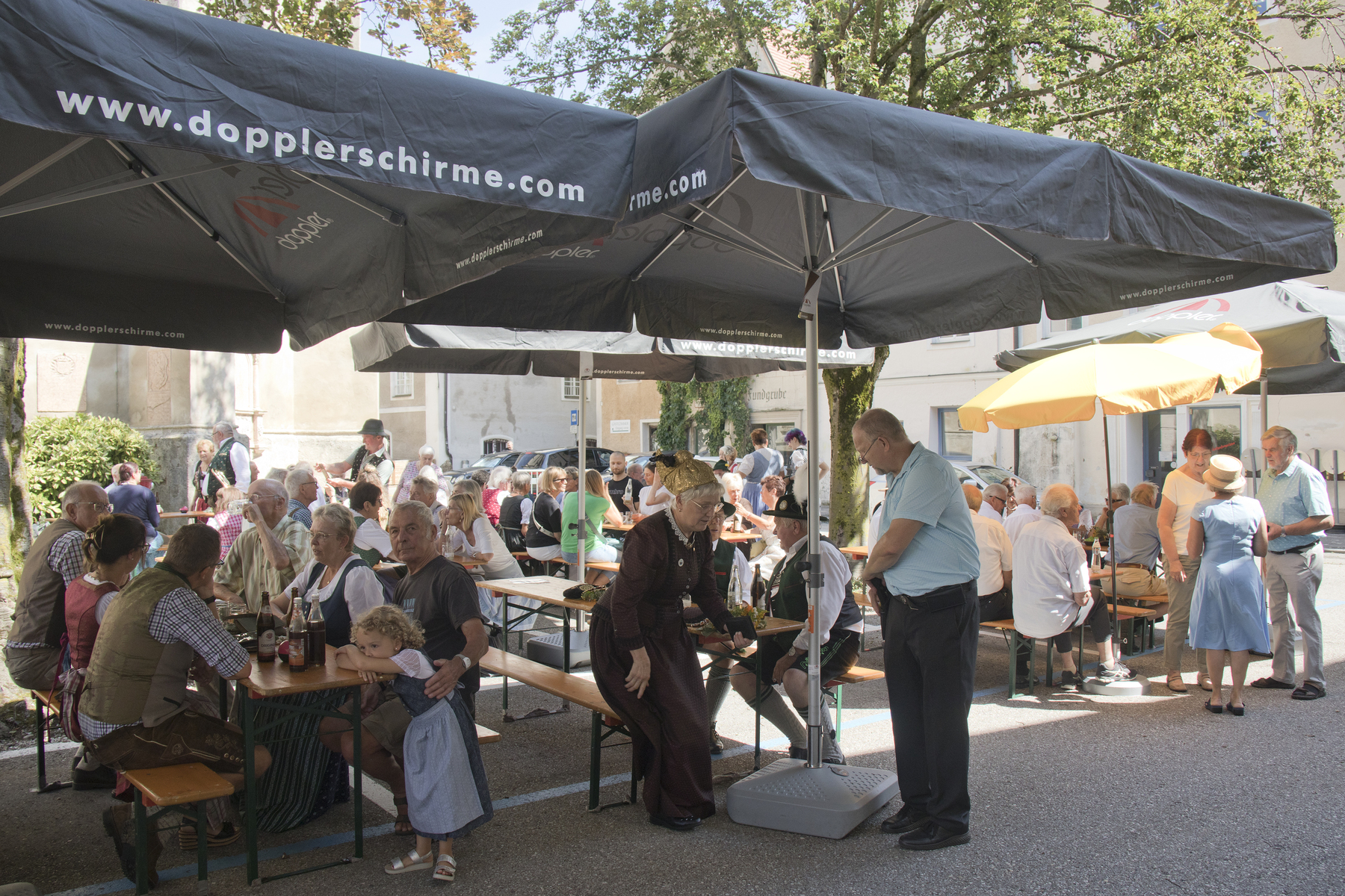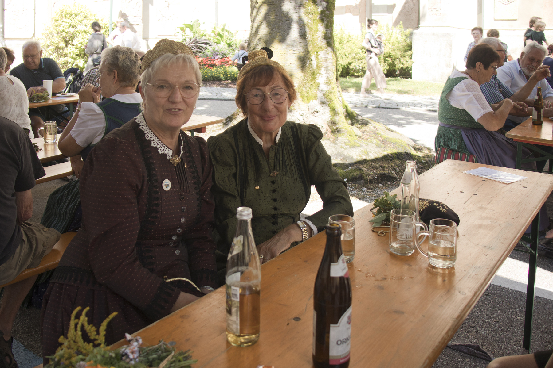 Die Haselbacher Goldhaubenfrauen hatten viele Kräuterbüschchen gebunden, die am Ende der Messfeier nach der Segnung angeboten wurden und bis auf das allerletzte Büscherl reißenden Absatz bei den Mitfeiernden von "drent und herent" fanden. Auch dass die beiden Bürgermeister der Nachbarstädte Braunau und Simbach sowie die Antersdorfer Trachtler von "drent" mitfeierten, ist schon eine langjährige Tradition. Frau Christa Gratzl, Obfrau der Haselbacher Goldhauben, hatte mit ihrem Team aus Familienangehörigen sowie Mitarbeitenden aus der Pfarrgemeinde und Goldhaubengruppe für einen reibungslosen organisatorischen Ablauf des Festes gesorgt.
