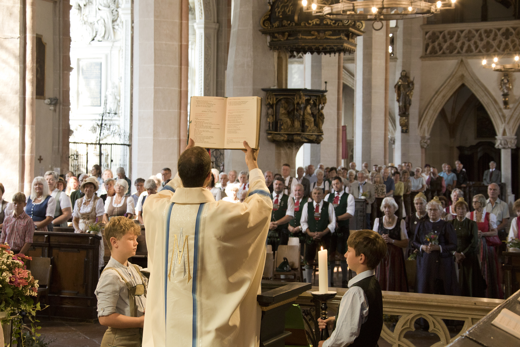 Schon seit vielen Jahren ist es eine liebgewordene und allseits geschätzte Tradition geworden, dass am Festtag Mariä Himmelfahrt, 15. August, nicht nur der Tag der Tracht in der Pfarrgemeinde Braunau-St. Stephan begangen wird, sondern natürlich auch Kräuterbüschchen gesegnet werden und im Anschluss an die Festmesse am Kirchenplatz beim gemütlichen musikalischen Frühschoppen Besucherinnen und Besucher noch lange beisammensitzen.