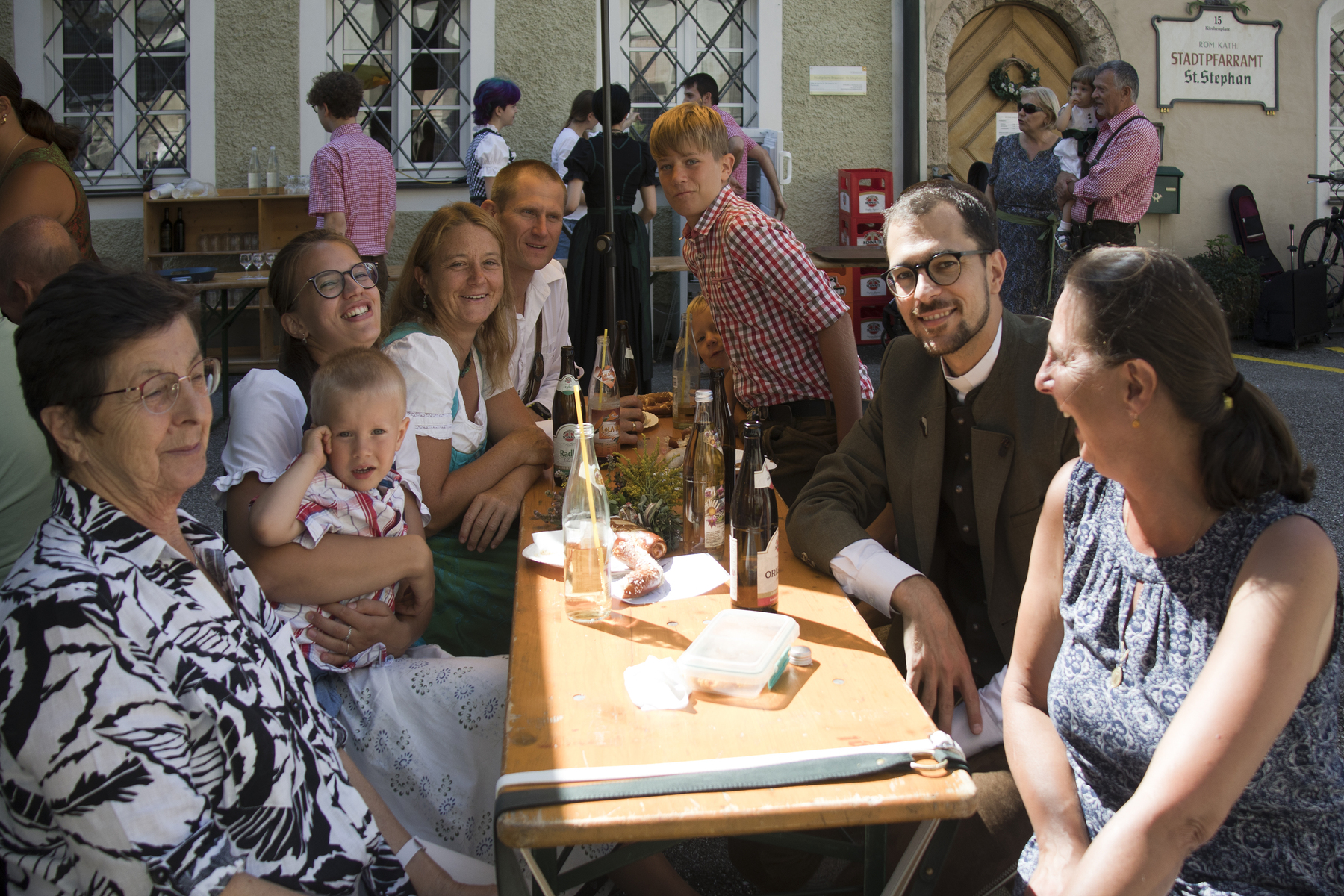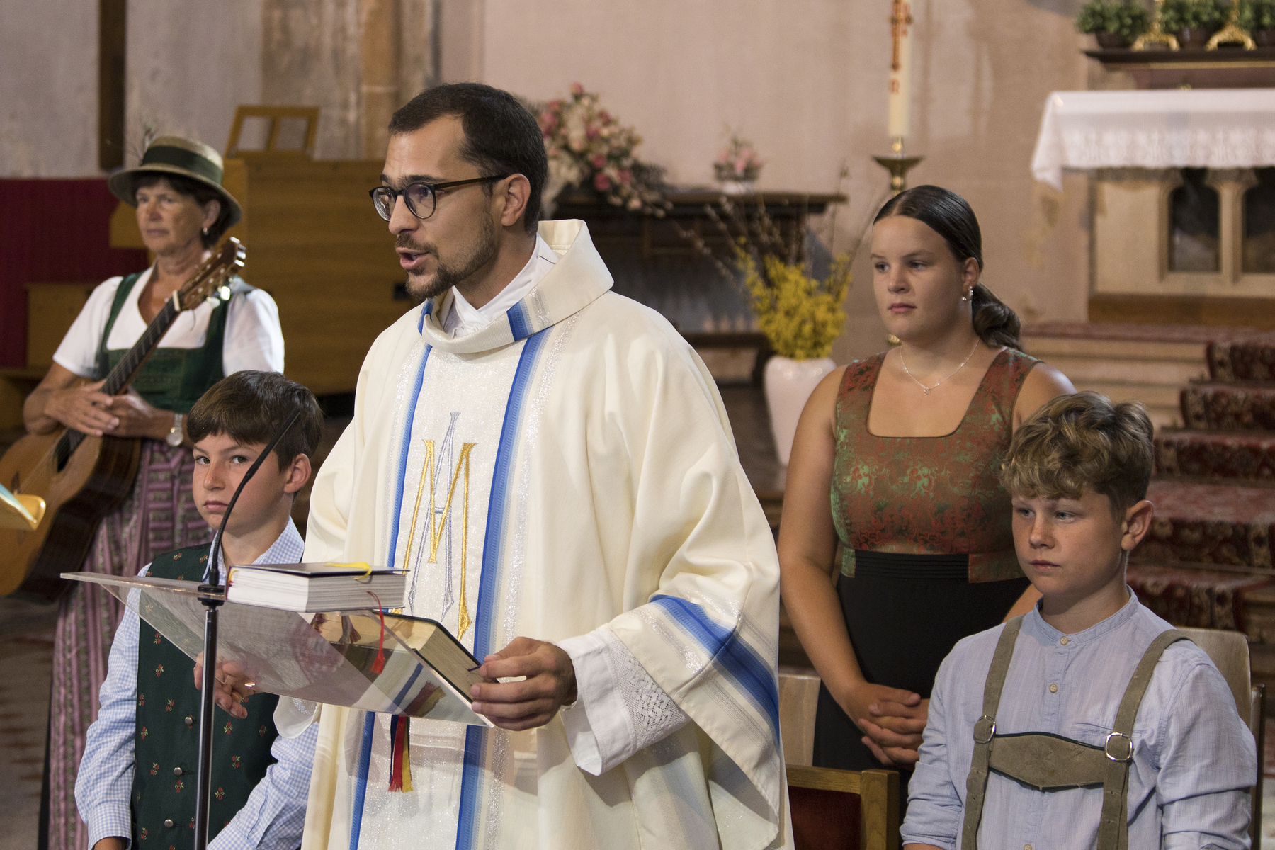 Heuer hatte die "Guat-Drauf-Musi" der Familie Helga und Christian Thurner wieder die musikalische Gestaltung der Feiertagsmesse, die Kaplan Philipp Faschinger mit der Festgemeinde feierte, sowie - mit Unterstützung von Herbert Hauser an der Ziehharmonika - auch die musikalische Begleitung beim Frühschoppen übernommen.