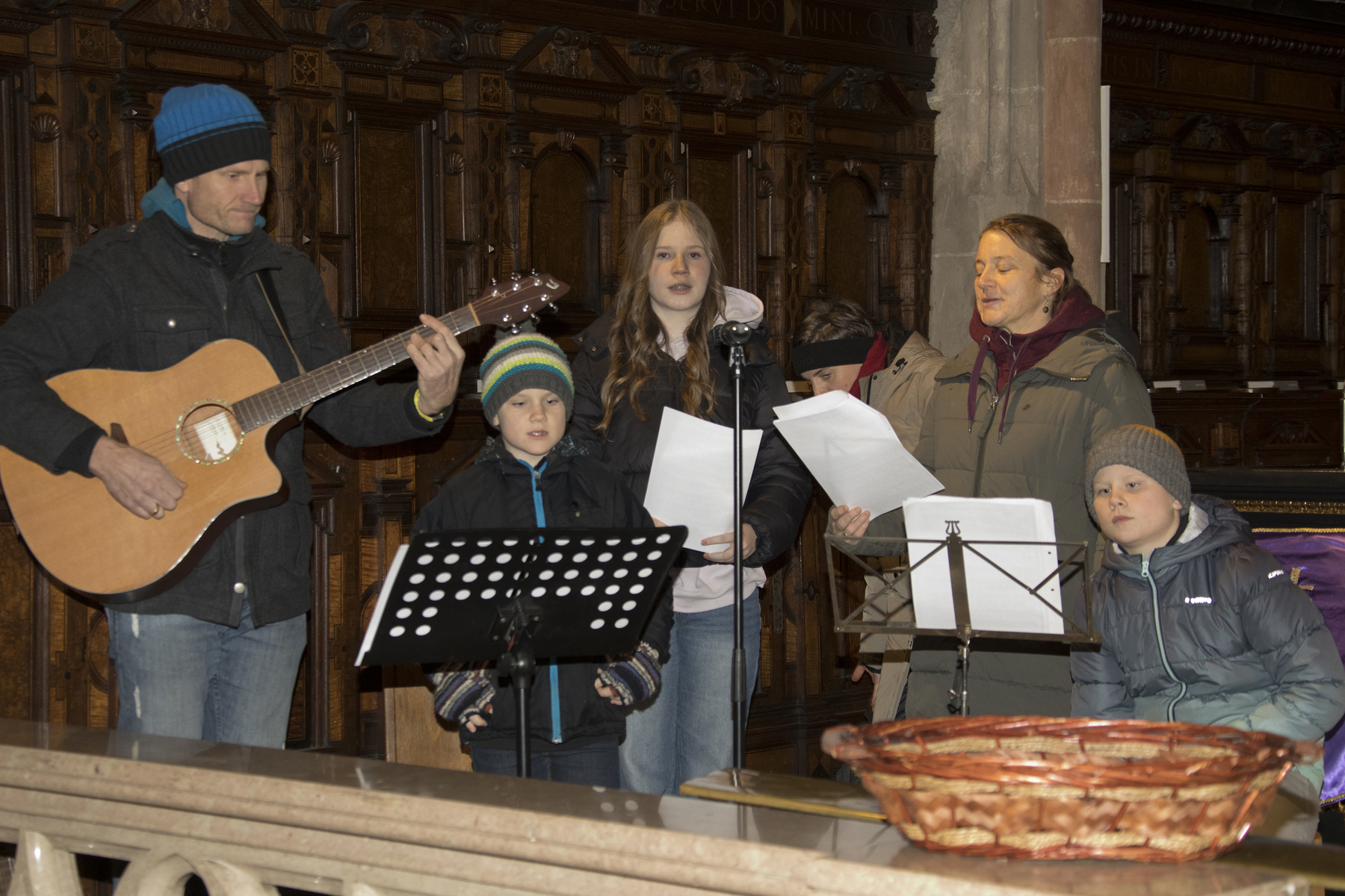 Das erste Adventwochenende stand in der Pfarrgemeinde auch heuer wieder unter dem Zeichen der Vorabendmesse mit Segnung der Adventkränze und dem Adventcafé im Pfarrsaal. Ministrantin Theresa konnte bei der Familienmesse einen Brief von Paulus aus Tarsus mit einer Nachricht an die Gemeinden von Thessalonich und von Braunau-St. Stephan öffnen und Kaplan Philipp Faschinger erklärte den Kindern nach dem Evangelium, was die eigentlich angstmachende Botschaft vom Ende der Welt mit Jesus bzw. Weihnachten zu tun haben könnte.