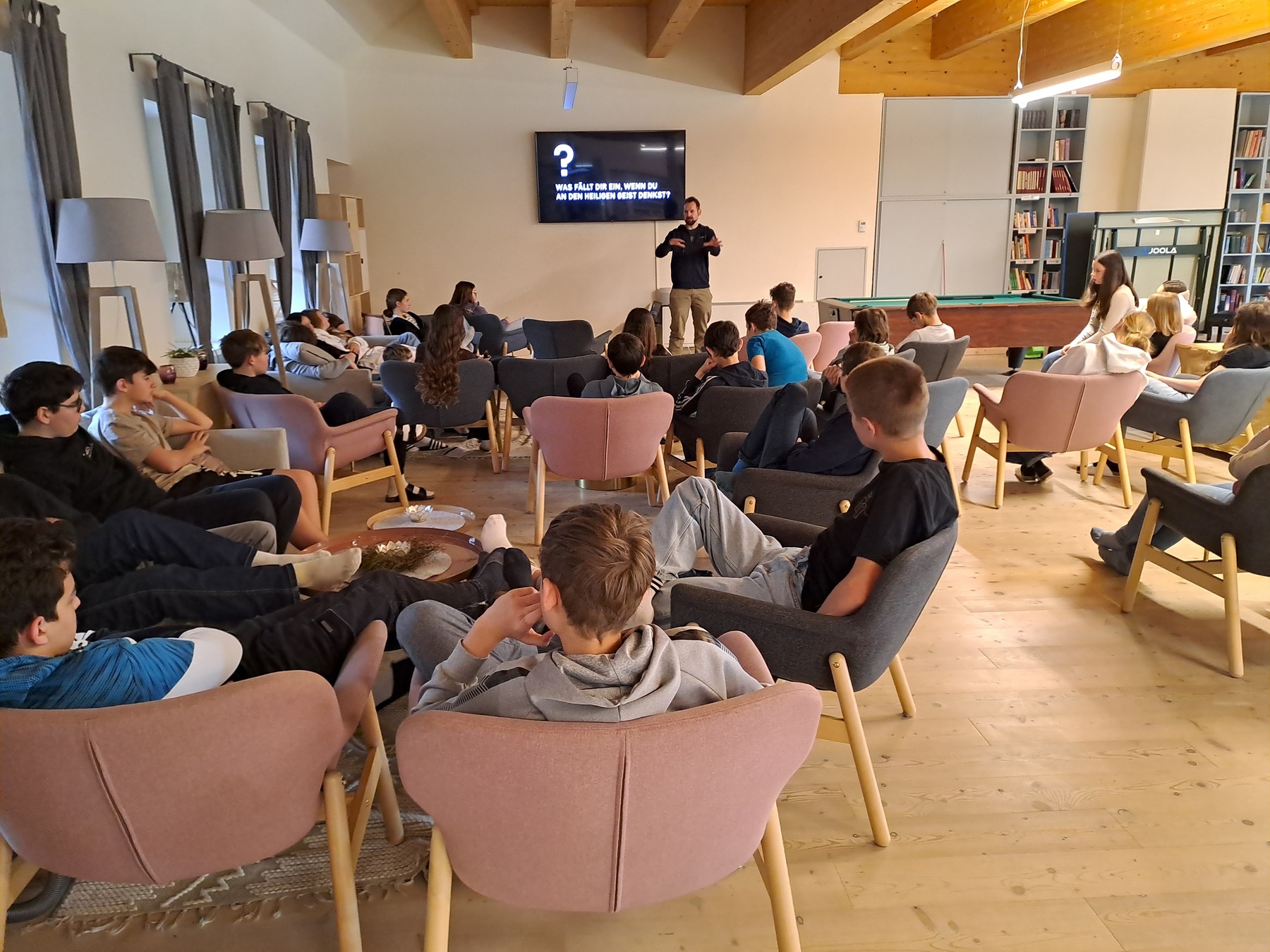 Begeistert und Herz und Kopf voller Eindrücke kamen 21 Firmlinge der Braunauer Pfarrgemeinden Maria Königin und St. Stephan von einem erlebnisreichen Wochenende in Altmünster am Traunsee zurück. Die Zeit von Freitagnachmittag bis Sonntagmittag hatten sie mit ihren Firmbegleiterinnen Matea Sekerija, Cornelia Lauschmann und Magdalena Lagetar sowie Kaplan Philipp im Kisi-Haus verbracht. Zusammen mit FirmkandidatInnen aus Münzbach konnten sie das tolle Jugendhaus in Besitz nehmen und nutzen mit allen Einrichtungen und Möglichkeiten, die das Herz eines Jugendlichen begehrt: ein riesiger Außenbereich mit Lagerfeuer-Platz, Teich, Grillplätzen, Fußballplatz, Volleyballplatz, Go-Kart-Bahn und noch vieles mehr. Neben Spaß und Spiel gab es auch Angebote zur Stille und Anbetung, Informationen zu den Sakramenten, speziell zum Firmsakrament, Gelegenheit zur Beichte, eine Feier der Heiligen Messe, Workshops und zeitgenössische christliche Musik.
