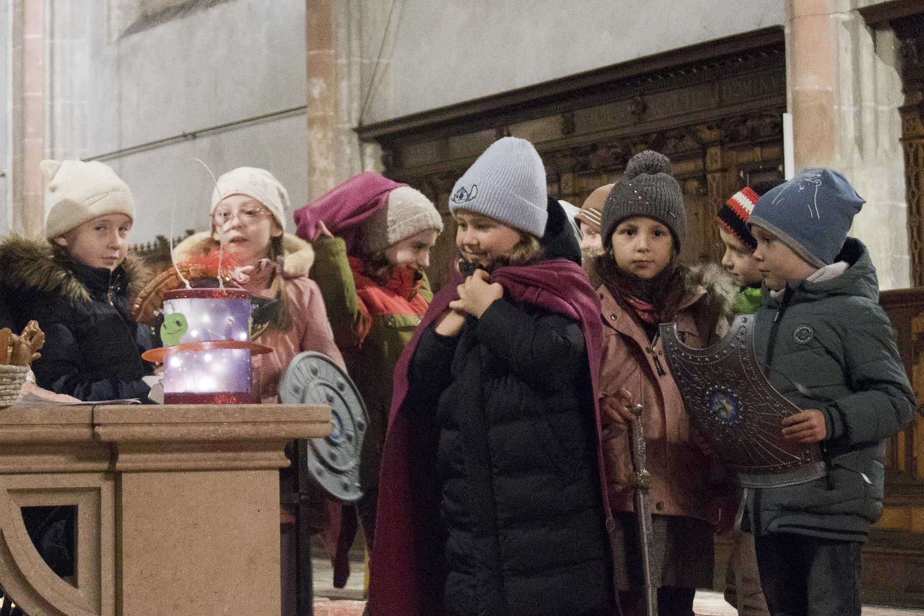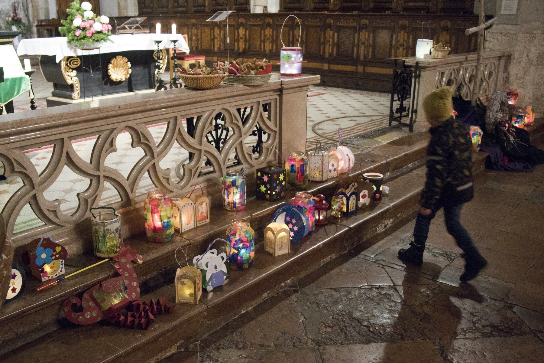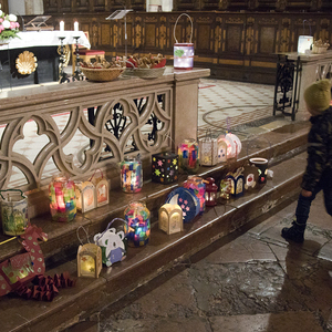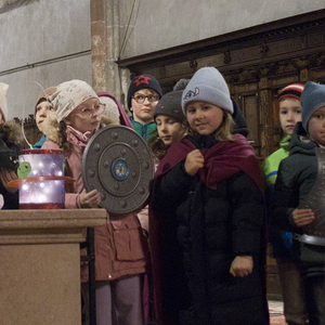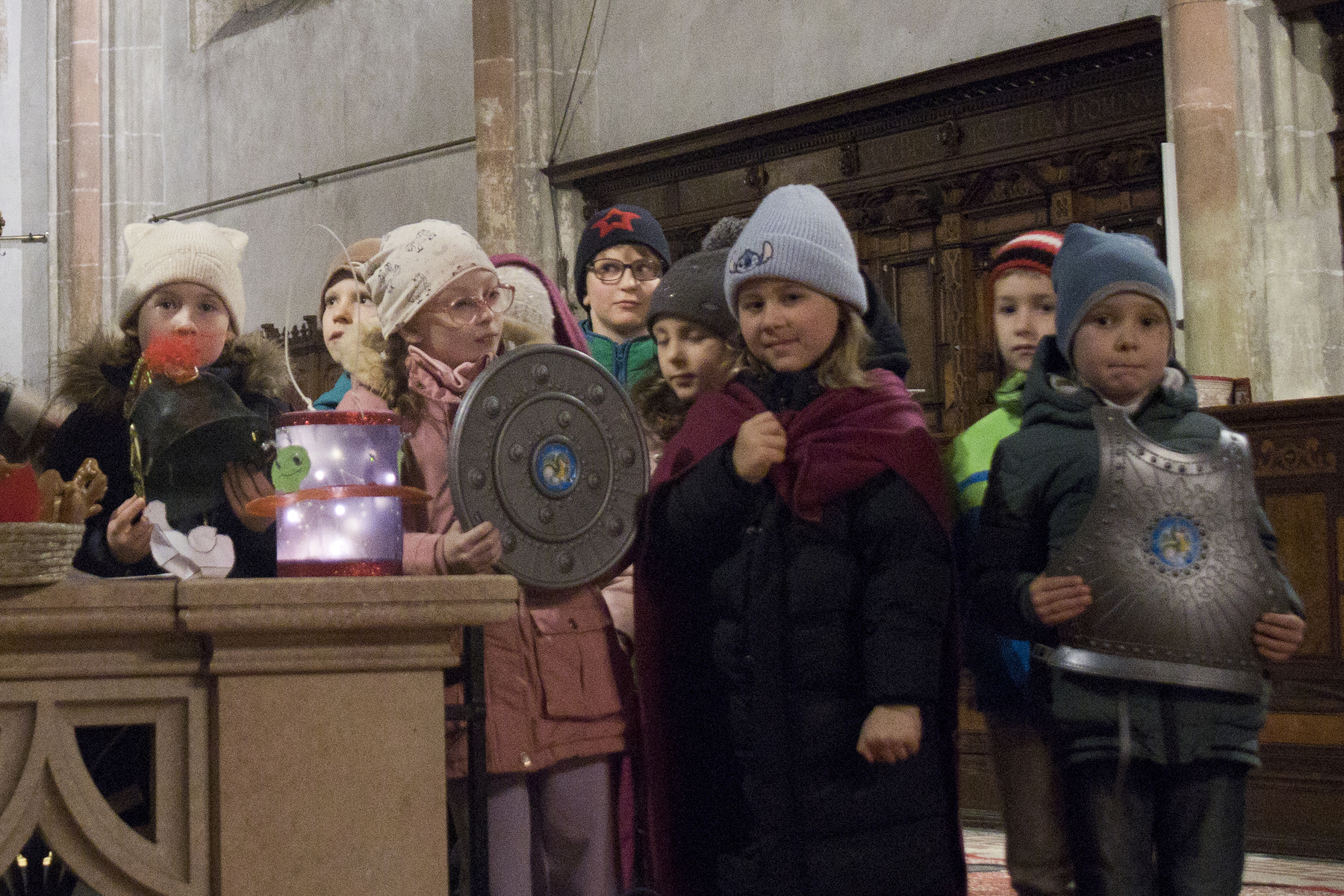 Am Festtag des Hl. Martin versammelten sich bei Einbruch der Dunkelheit viele Kinder mit ihren bunten Laternen zum Laternenumzug. Mit musikalischer Begleitung durch Bläser der Stadtkapelle Braunau zogen die Laternenträger mit ihren Begleitpersonen vom Palmpark durch das Rathaus über den Stadtplatz zur Stadtpfarrkirche, wo alle gemeinsam mit Kurat Josef Pollhammer eine Andacht feierten. Matthias Kritzinger von der Stadtkapelle begleitete die Lieder auf dem Klavier; begeistert beteiligten sich die Kinder an der Mitmach-Geschichte über den Heiligen Martin, die Inge Fink den Kindern erzählte. "Süße" Gänse aus Lebkuchenteig, die Anni Hauser und Gertraud Plank gebacken hatten und die an den Kirchentüren verteilt wurden, konnten alle zum Teilen mit nach Hause nehmen.