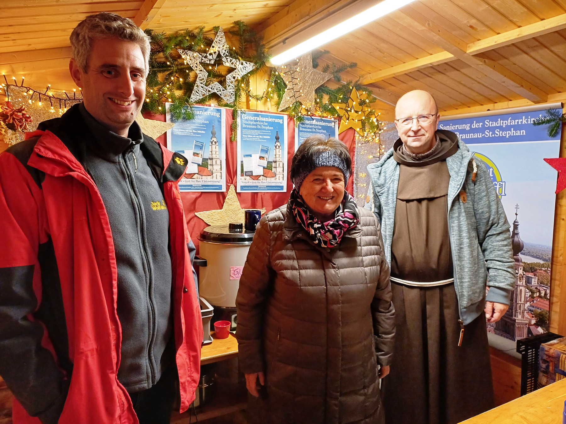 Zugunsten der Renovierung der wertvollen Glasfenster in der Stadtpfarrkirche ist die Pfarrgemeinde St. Stephan heuer zum ersten Mal am traditionellen Christkindlmarkt im Braunauer Palmpark mit einem Stand vertreten gewesen. Vielen Dank allen fleißigen und einsatzbereiten Menschen, die das möglich machten! Insgesamt waren 15 Personen an der Organisation und Besetzung des Standes beteiligt.