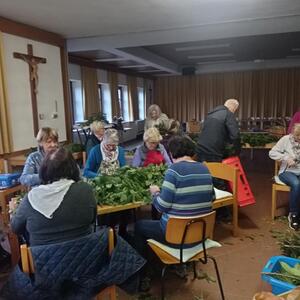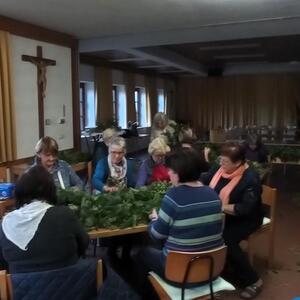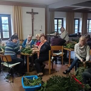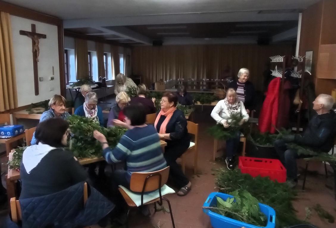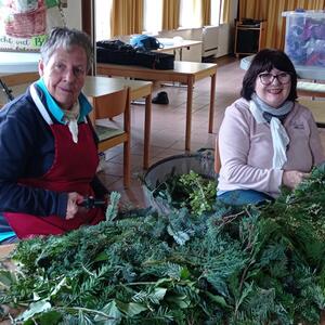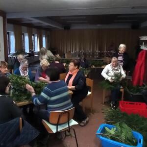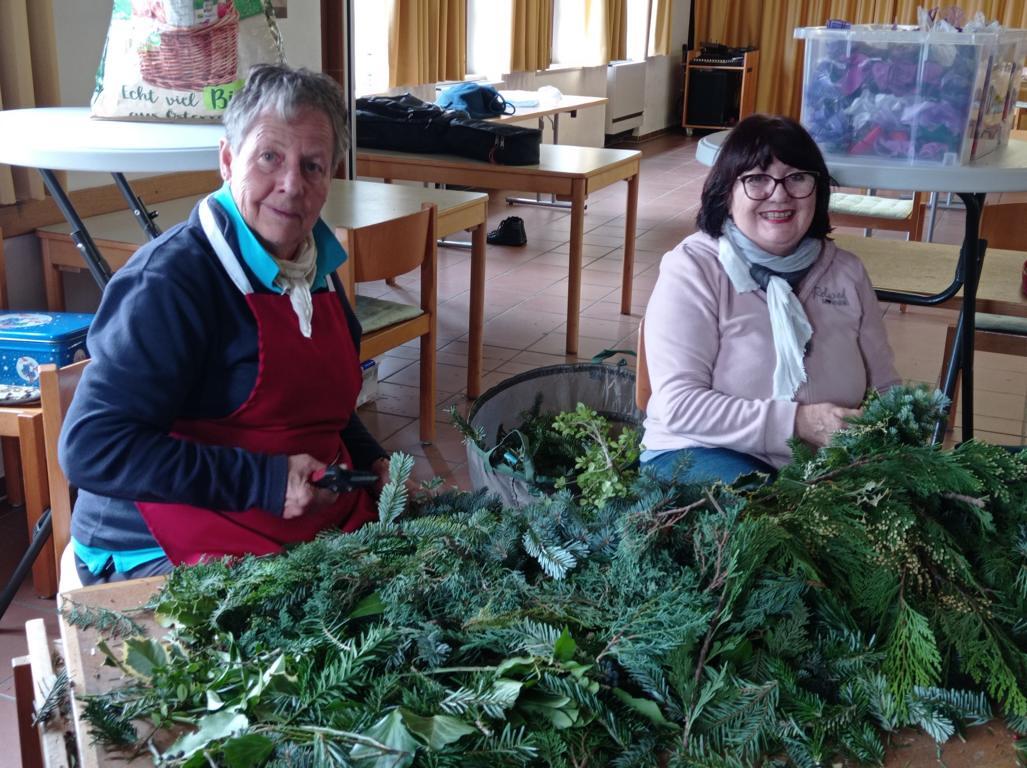 Frauen unserer Pfarre haben mehr als vierzehn Tag beim Adventkranzbinden und Kekse back fleissig für den Kathreinmarkt gearbeitet.