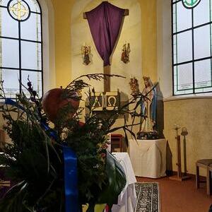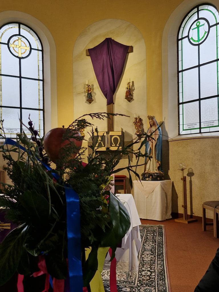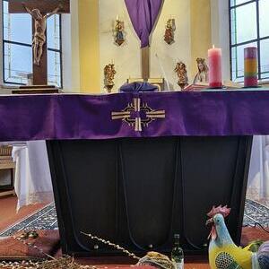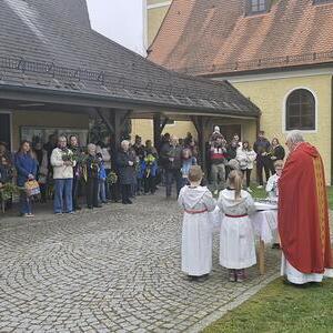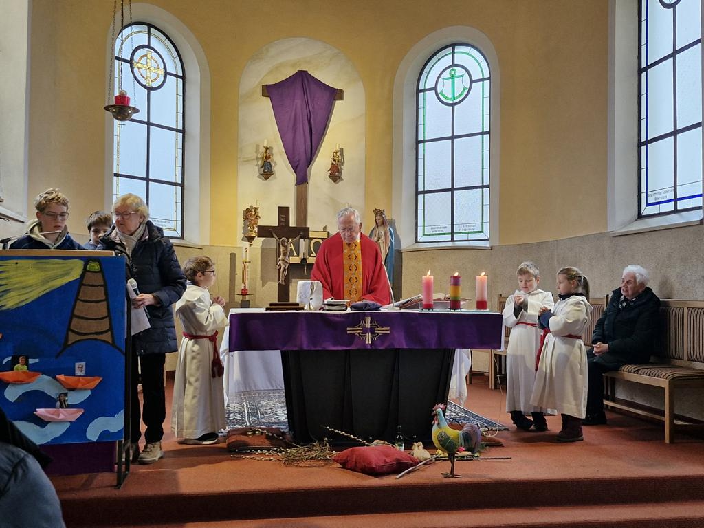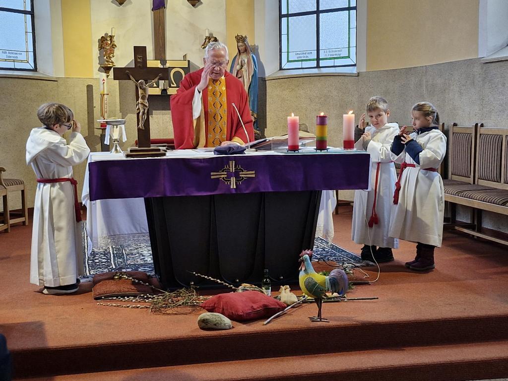 Die Ministranten und Kinder brachten Palmsonntagssymbole, die an den Einzug von Jesu in Jerusalem und an seinen Leidensweg erinnern sollten, an den Altar und sprachen dazu kurze Texte.