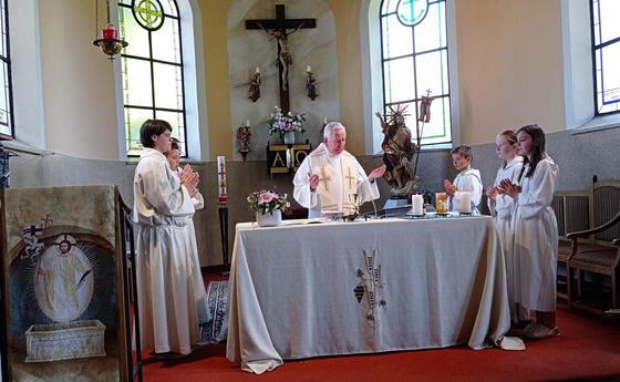 In unserer Pfarre feierten vierzehn Kinder den ersten Empfang des Sakraments der heiligen Kommunion. Zusammen mit den Paten und Patinnen, den Eltern, Geschwistern und Verwandten fand dann im Pfarrhof eine kleine Agape statt.