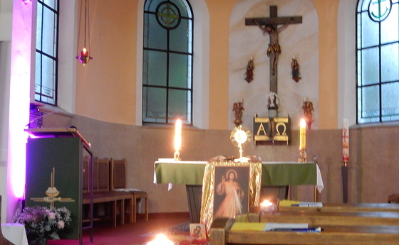 Vor dem Allerheiligsten konnte jeder Besucher eine kleine Kerze und seine persönlichen Anliegen bringen. Anita, Bettina und Martina trugen Lobpreislieder sowie Impulse vor.