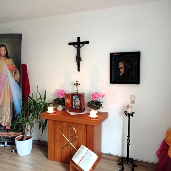 Am 29. November weihte Msgr Hofer den neuen Anbetungsraum ein. Das ehemalige Kaplanzimmer wurde liebevoll und einfach eingerichtet.